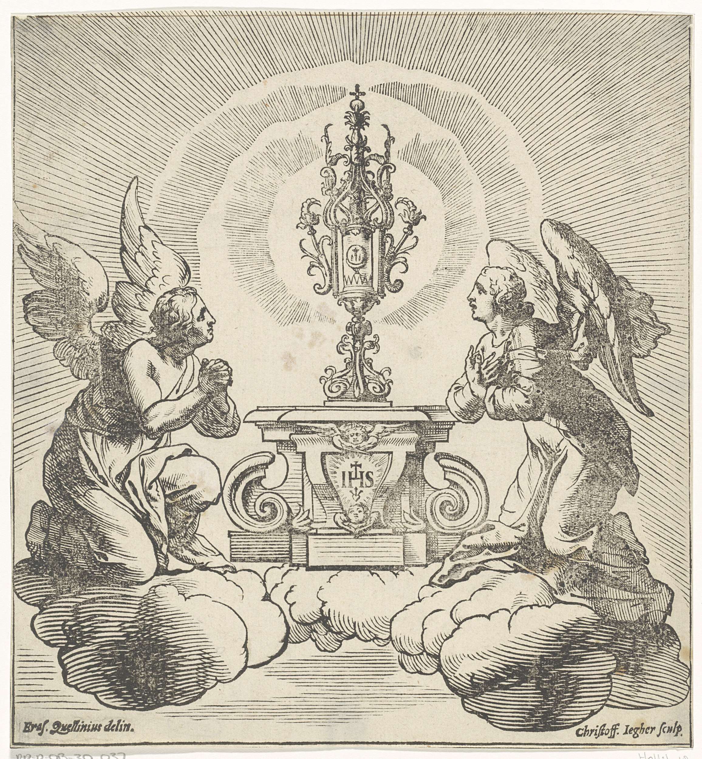 Twee engelen aanbidden de hostie