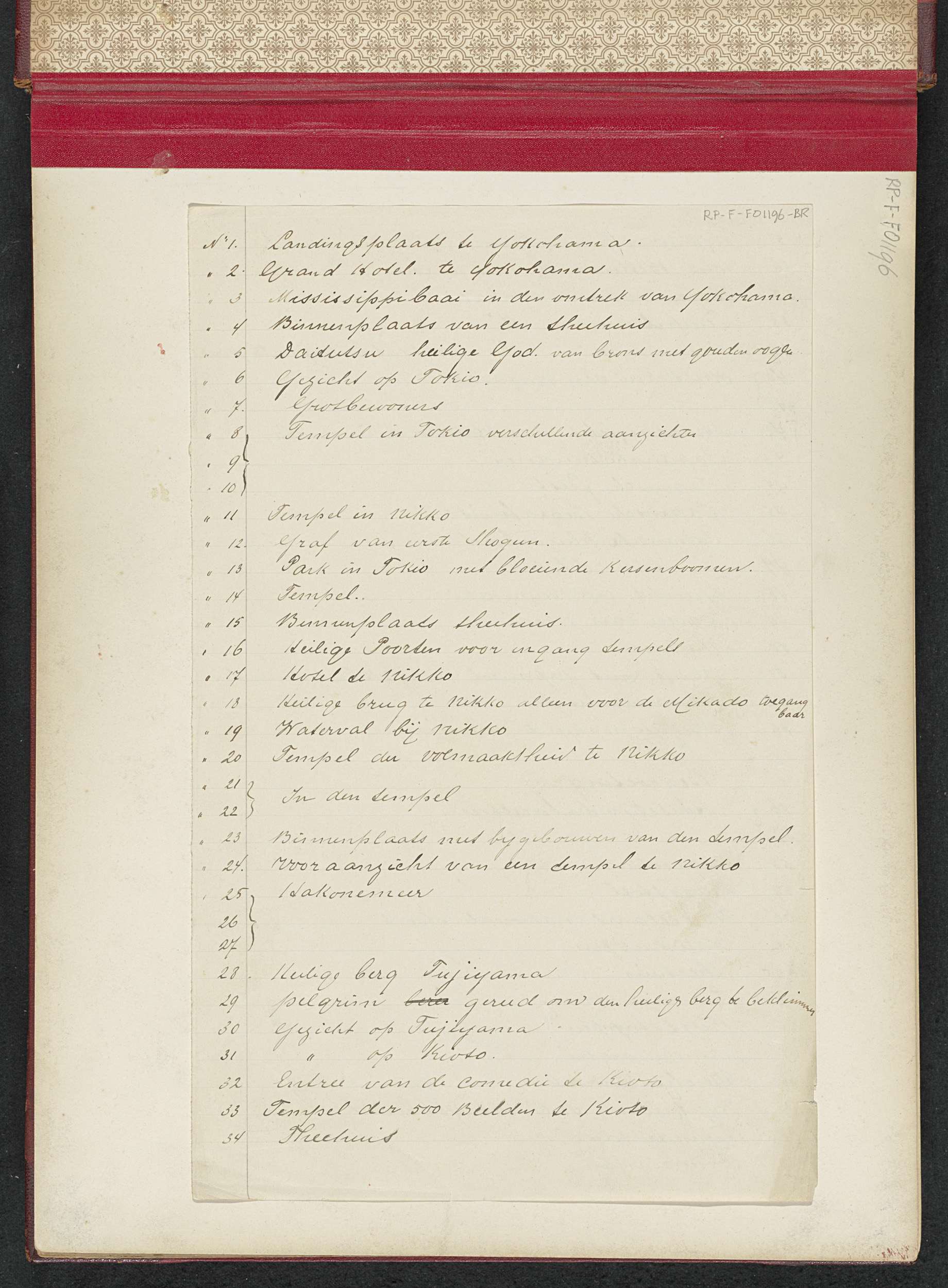 Lijst met in het album afgebeelde onderwerpen (1 t/m...