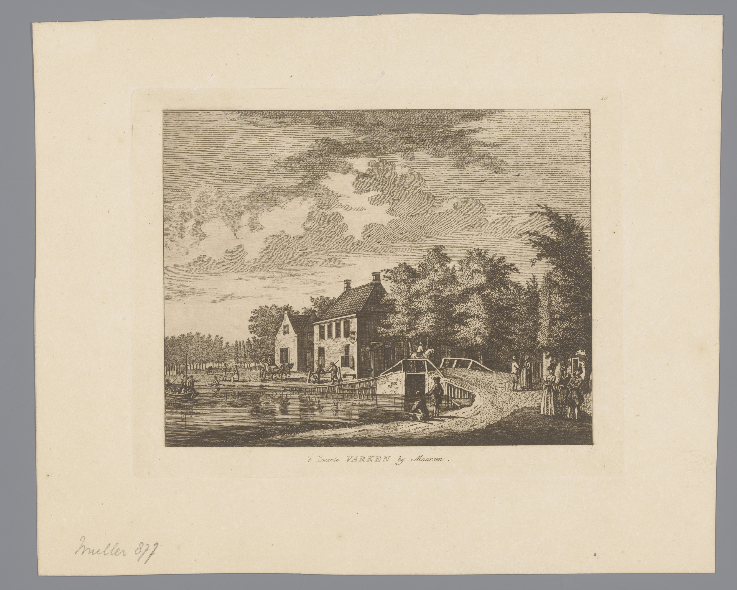 Gezicht op rechthuis en herberg Het Zwarte Varken