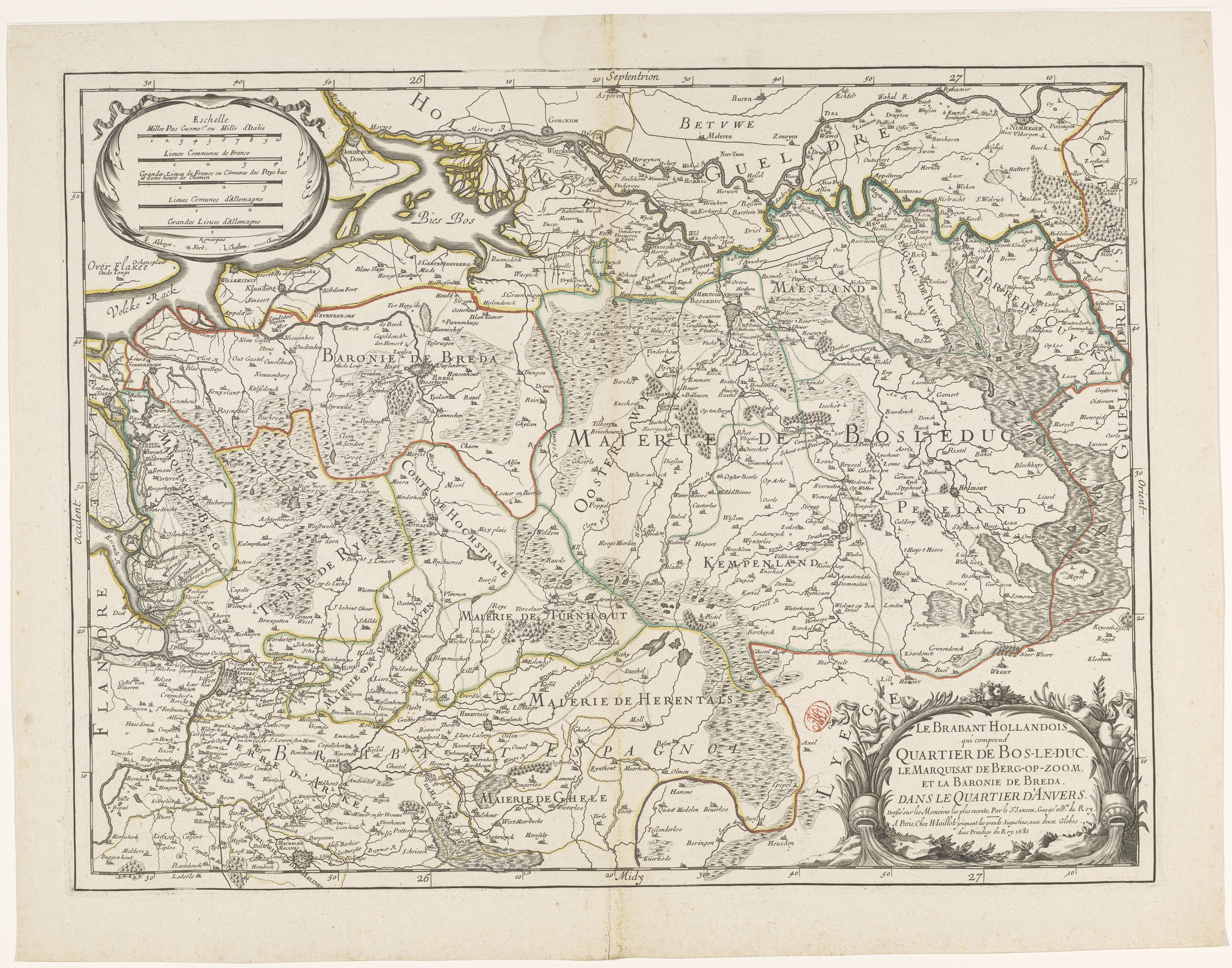 Kaart van het noordelijk deel van het hertogdom Brabant