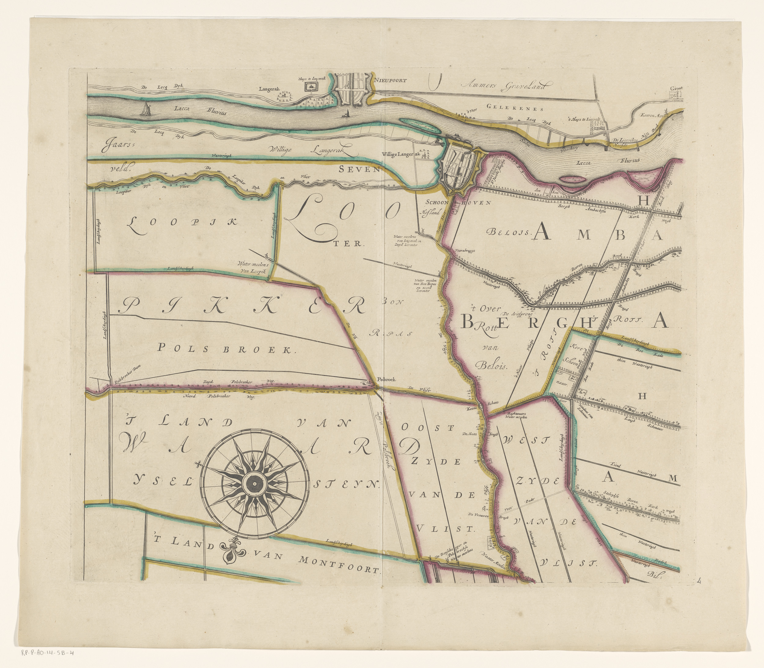 Kaart van het poldergebied de Vierpolders
