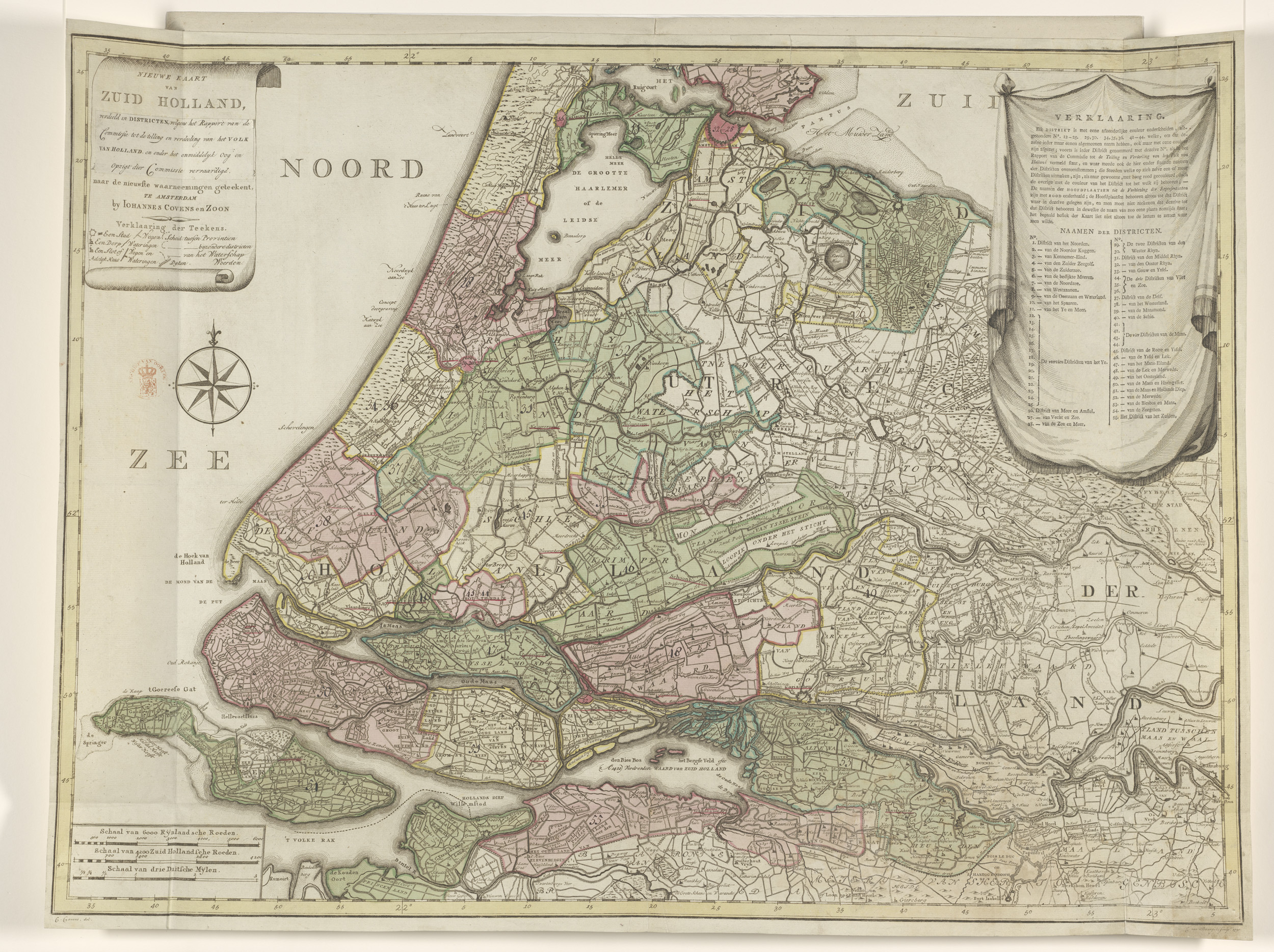 Kaart van Zuid-Holland, verdeeld in districten, 1796