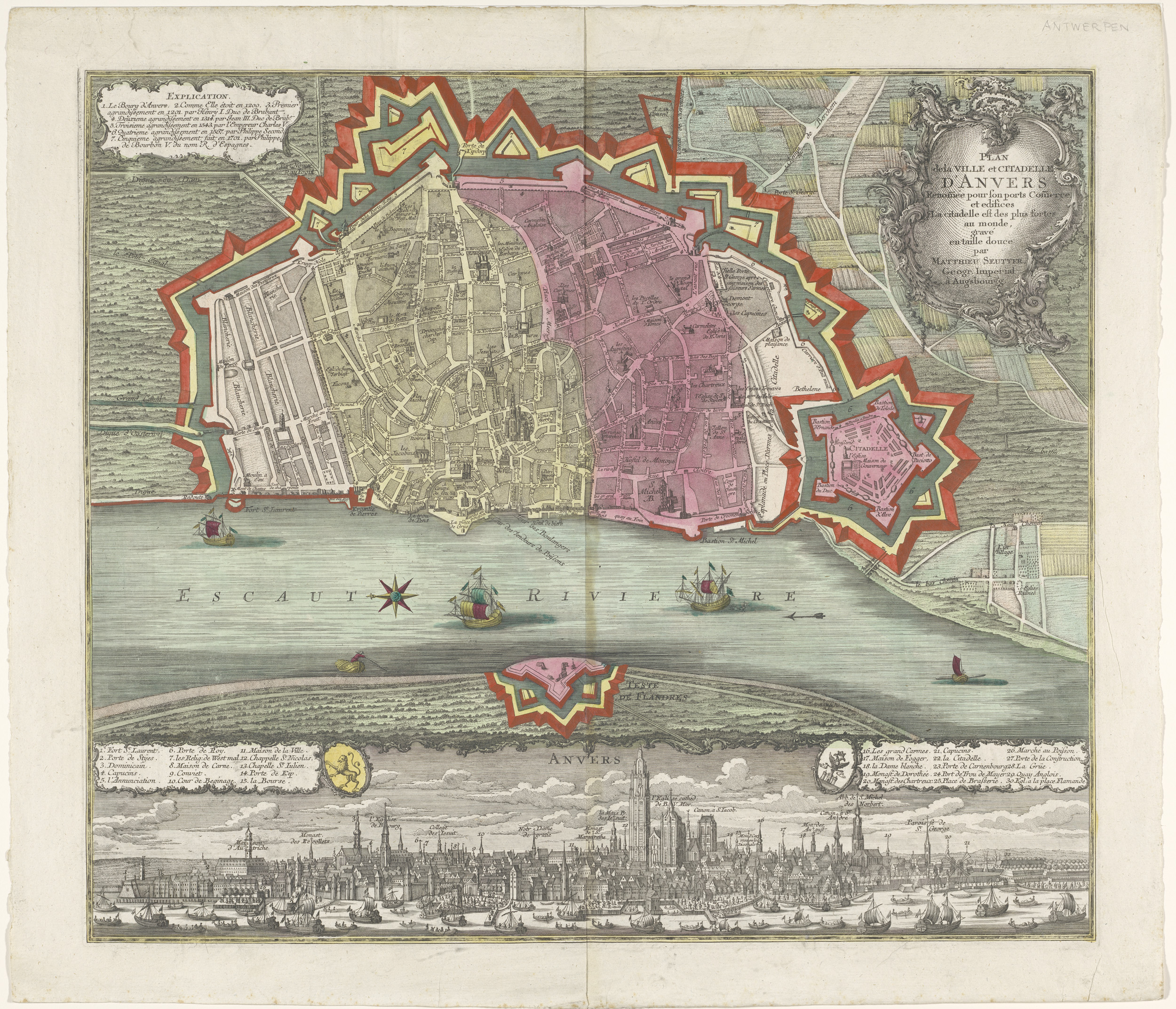 Plattegrond van Antwerpen met stadsgezicht