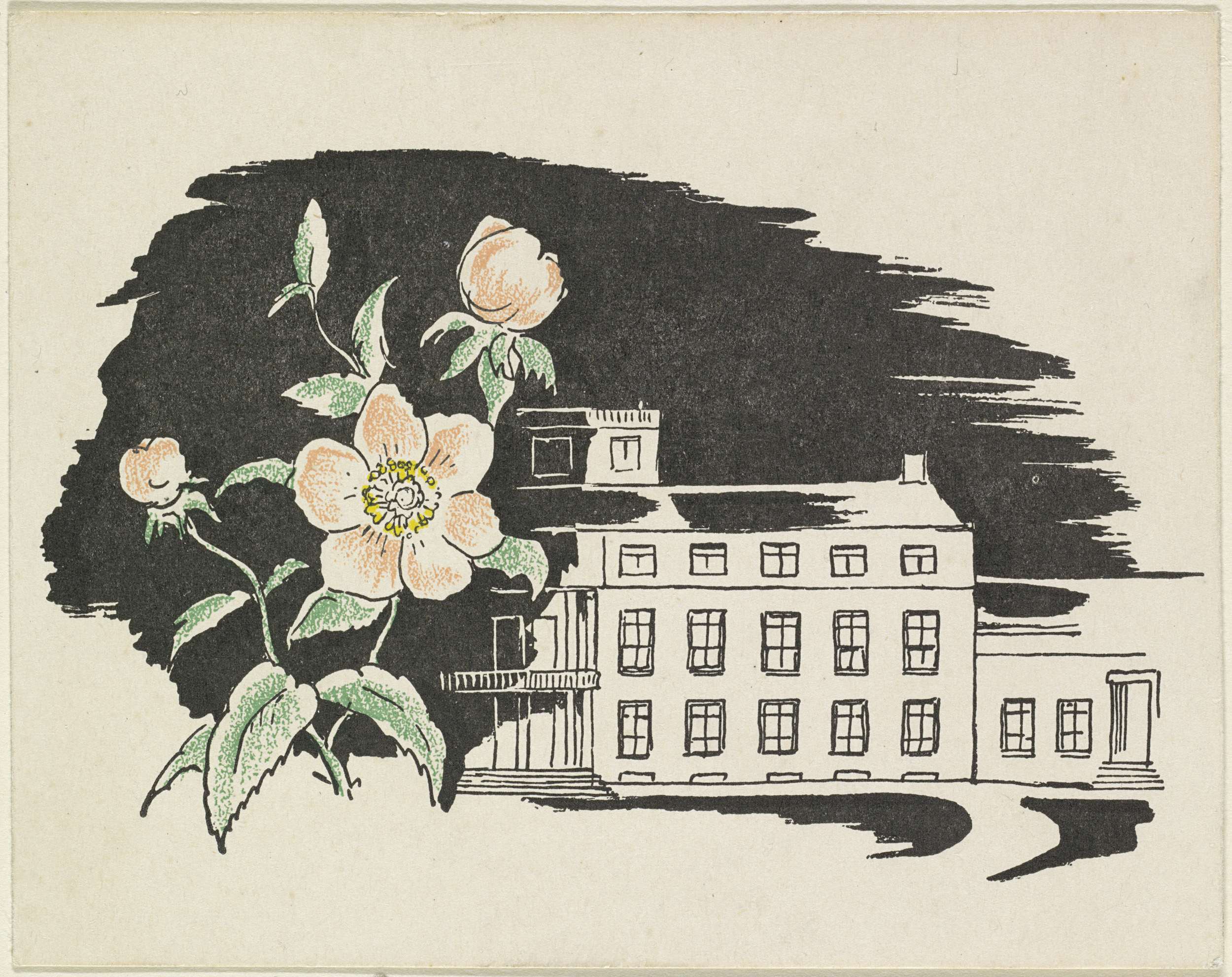 Paleis Soestdijk en een bloem met silhouetportretten...