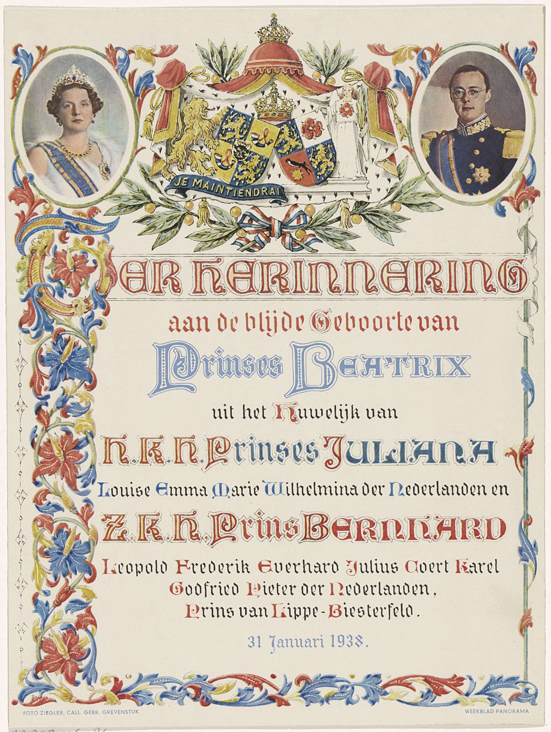 Feestplaat ter ere van de geboorte van Beatrix, koni...