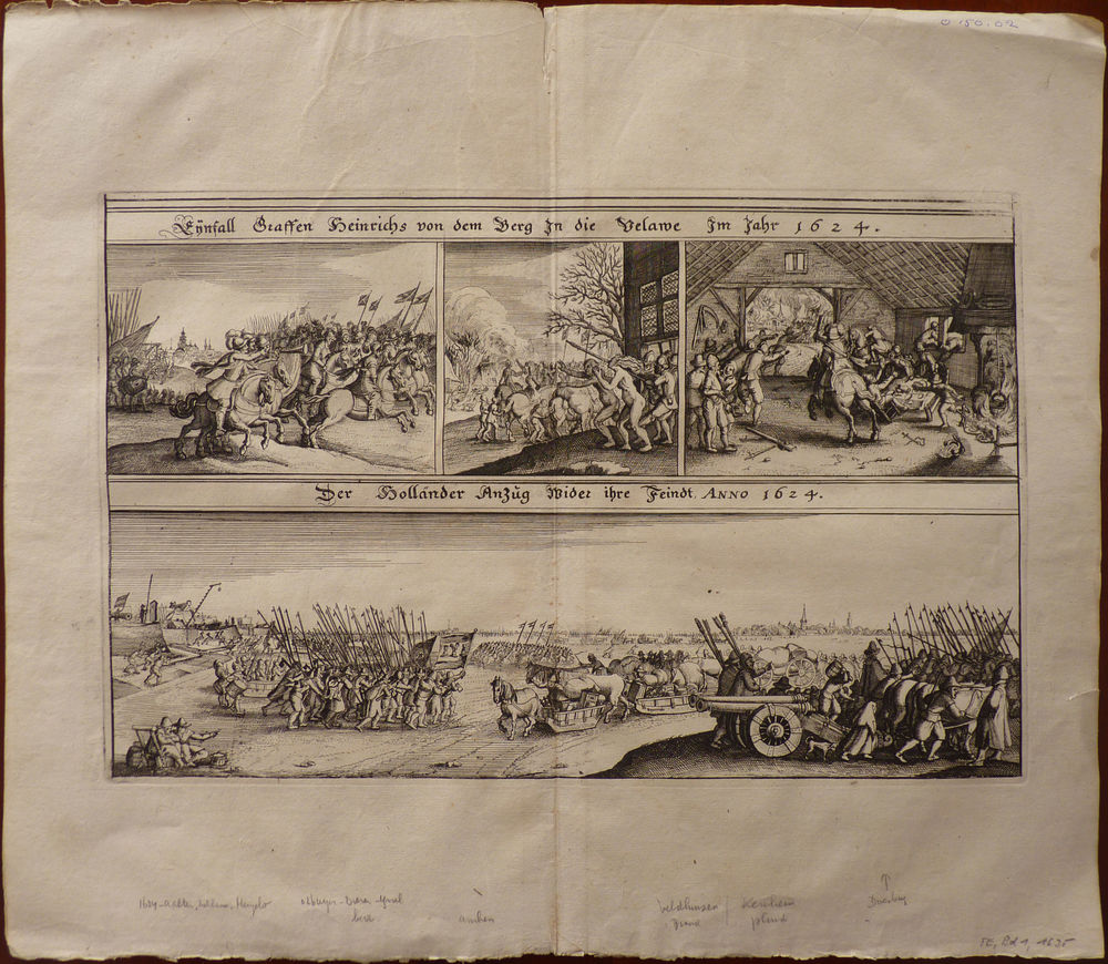 Gravure "Einfall Graffen Hendrik van den Bergh in 16...