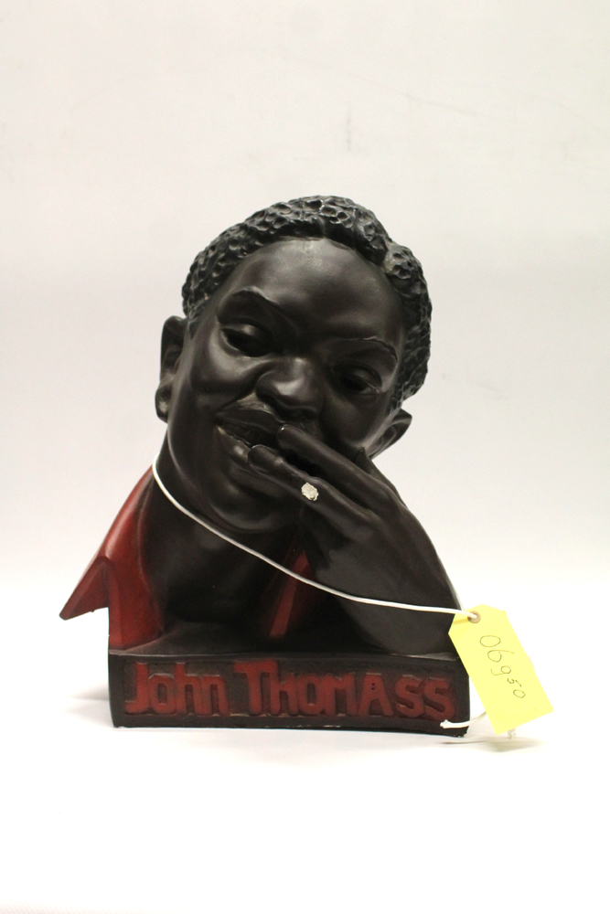 Tabaksreclame hoofd van gips 'John Thomass' ca. 1928