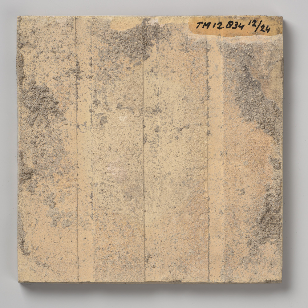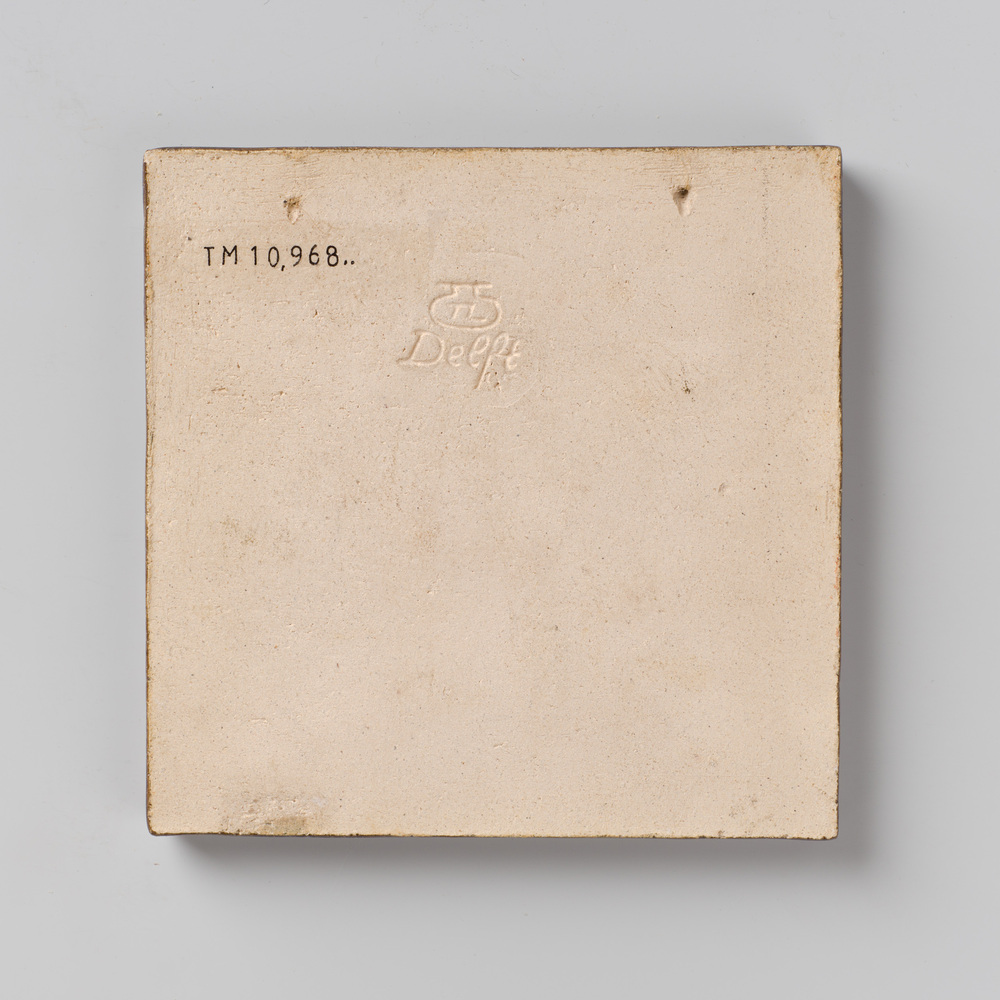 tegel van keramiek met tinglazuur, voorstellende: ze...