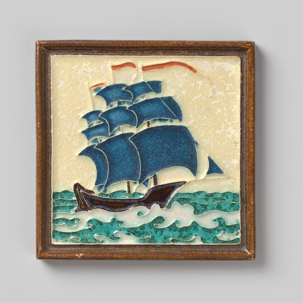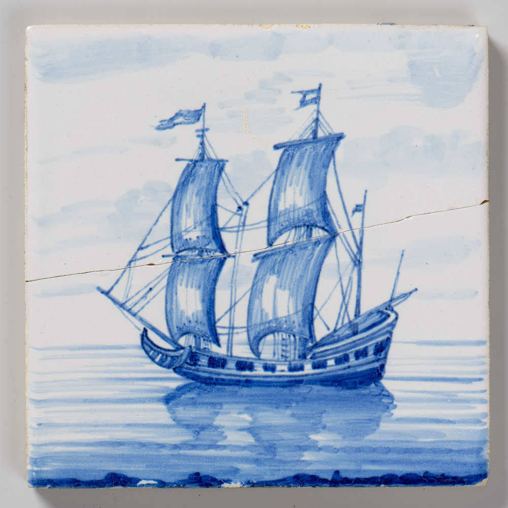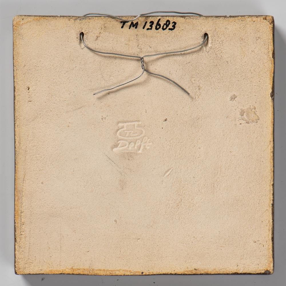 tegel van keramiek met tinglazuur, voorstellende: so...