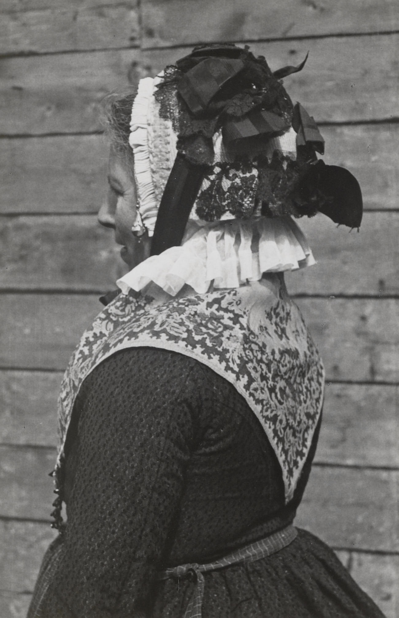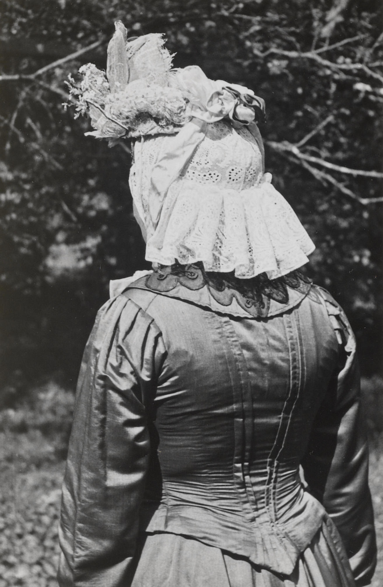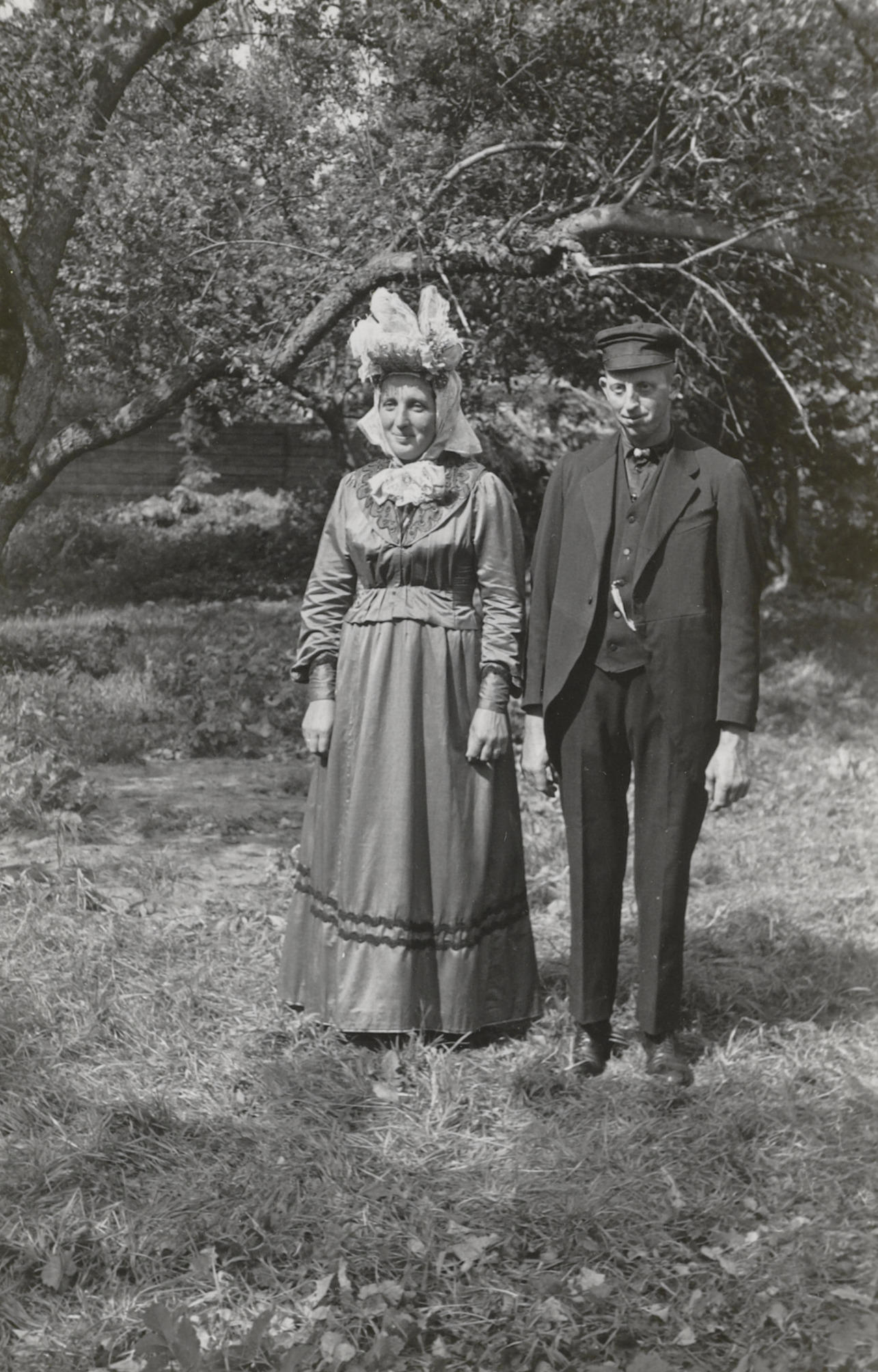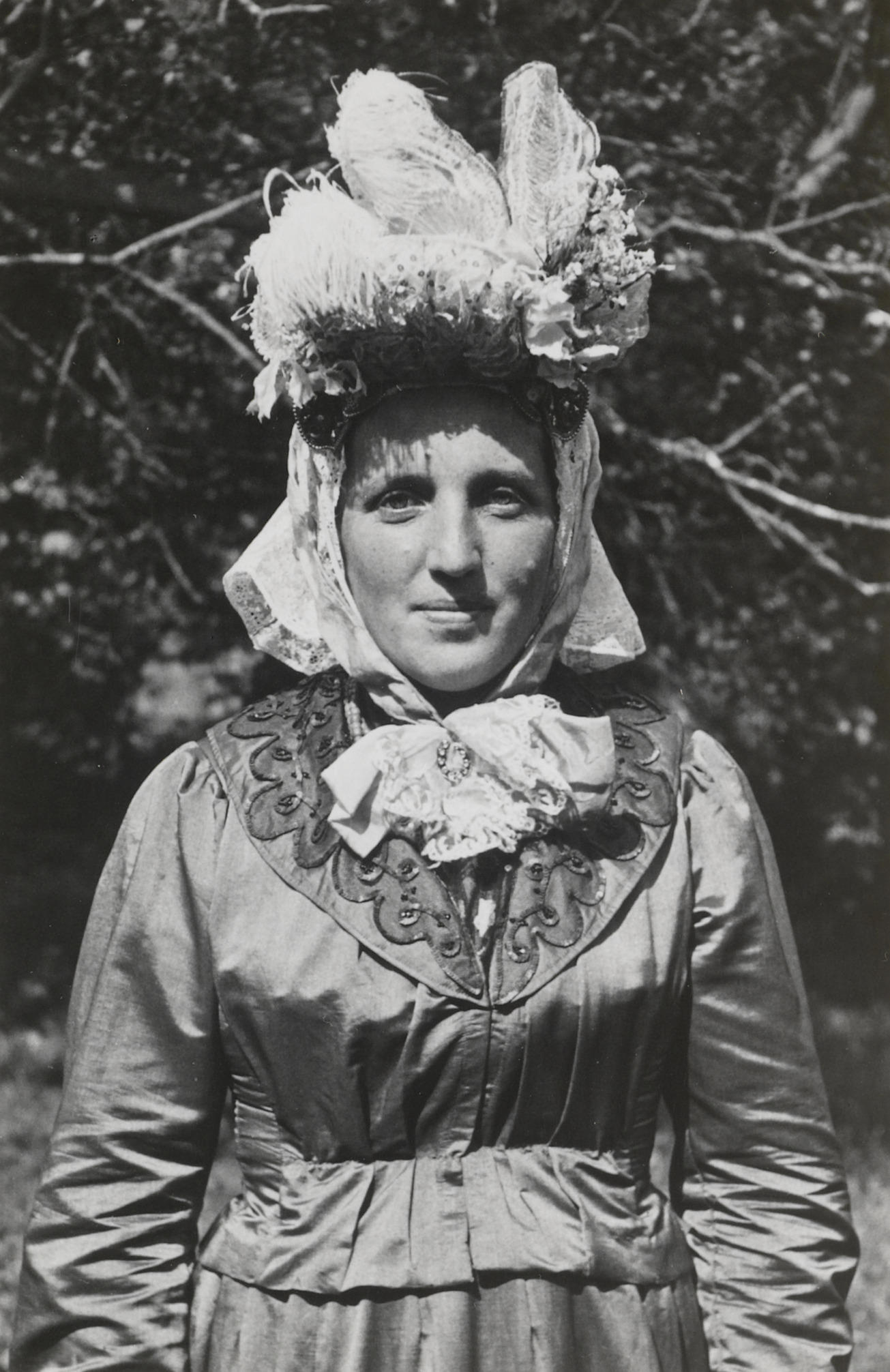Vrouw, verkleed in ouderwetse dracht, Giethoorn, 194...