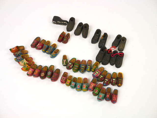 Houten speelgoed, 38 klompjes en 6 paar schoenen