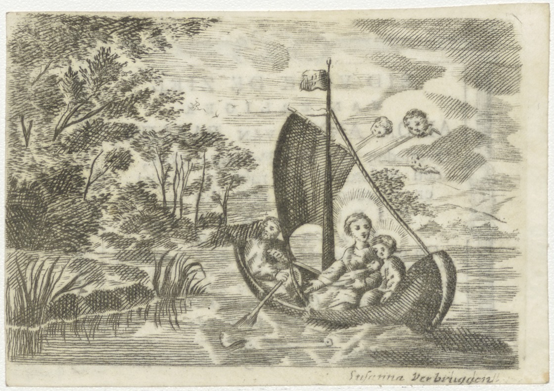 H. Familie in bootje tijdens vlucht naar Egypte, kz....