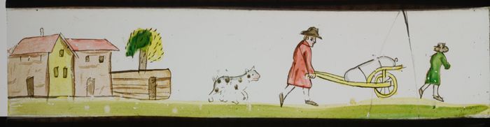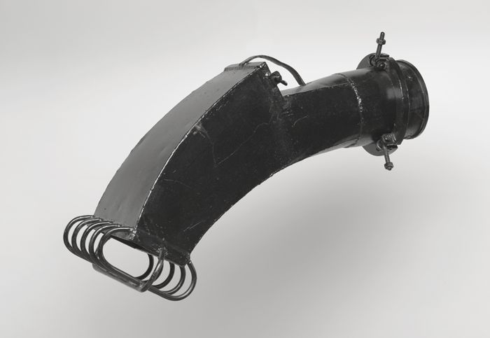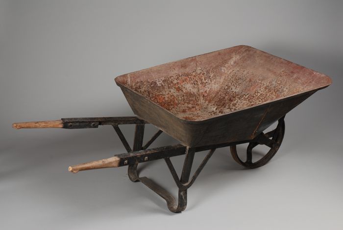Zwart geschilderde ijzeren kruiwagen (speciewagen?) ...