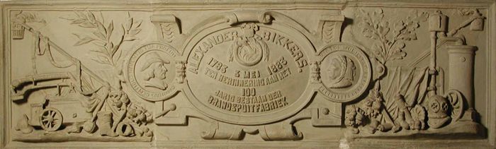 Gevelsteen uit brandspuitenfabriek Bikkers
