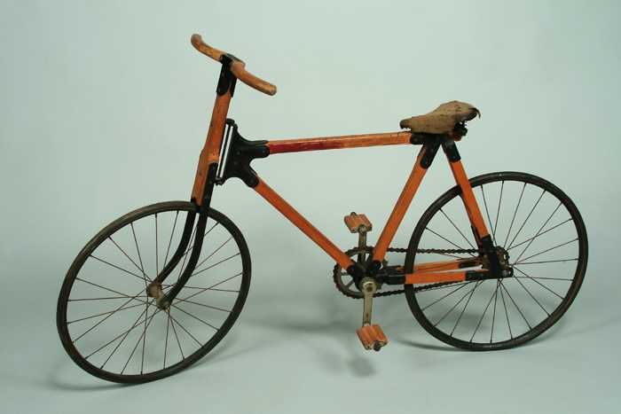 Houten jongensfiets van "Eureka" met massieve rubber...