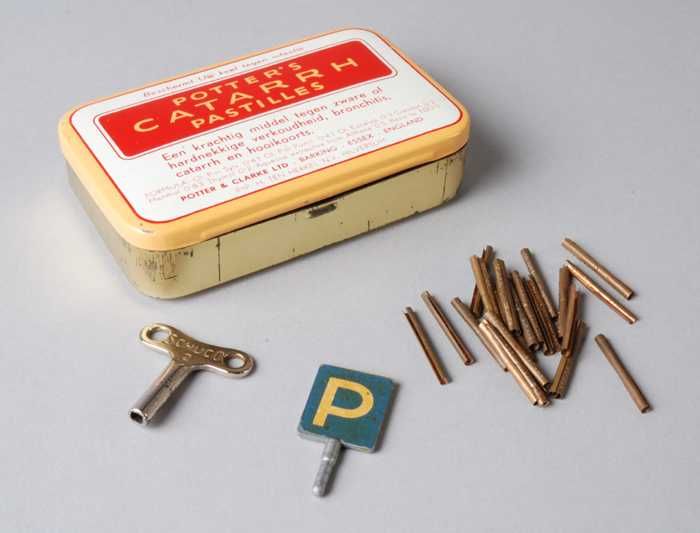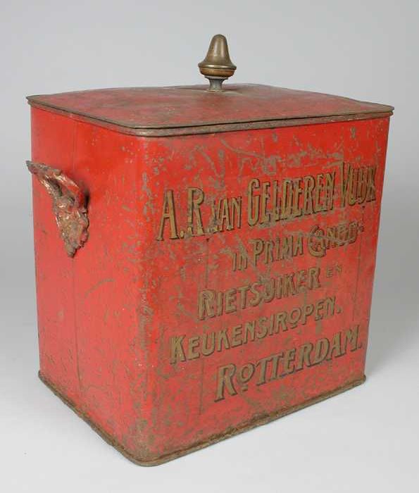 Rechthoekig blikje met klepdeksel, met opdruk "Potte...