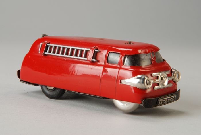 Rode Schuco brandweerauto met geleidewiel, model Var...