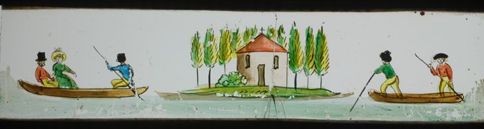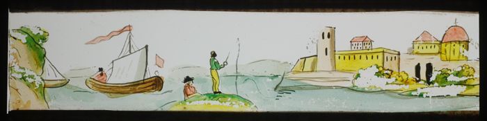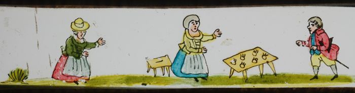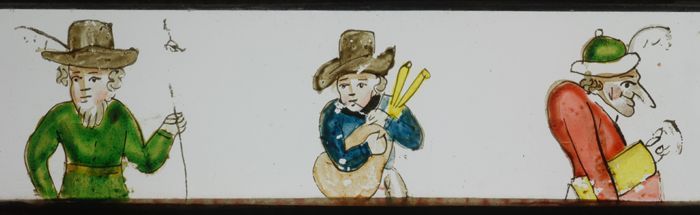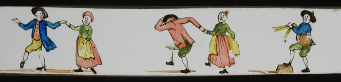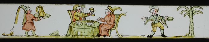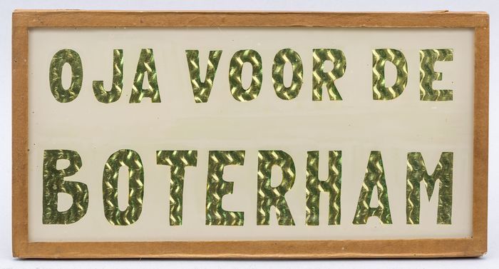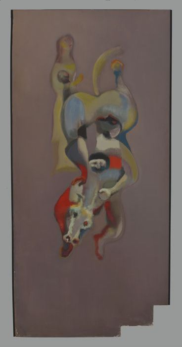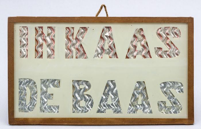 Geschilderd wandpaneel met rechtsboven een vrouwenfi...