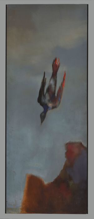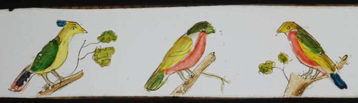 Geschilderd wandpaneel met voorstelling van vogel di...