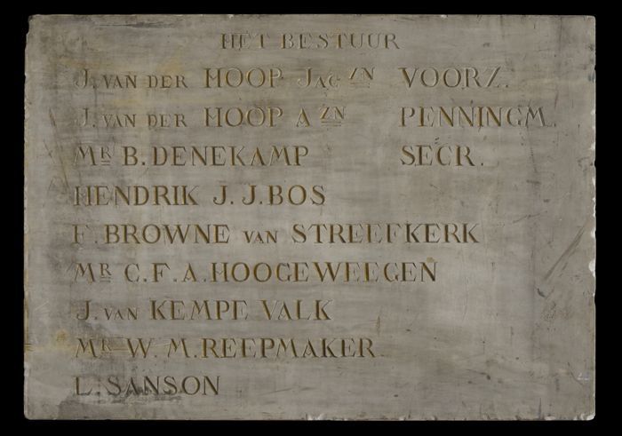 Gedenksteen Rotterdamse Schouwburg met "het bestuur ...