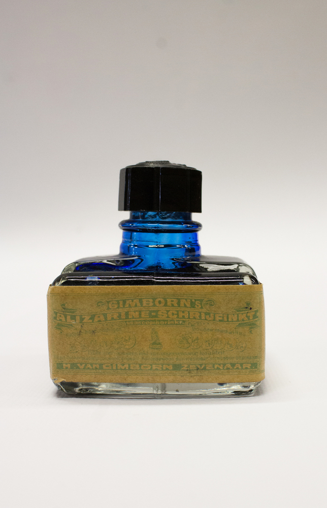Inktpot van glas met schrijfinkt door H. van Gimborn...