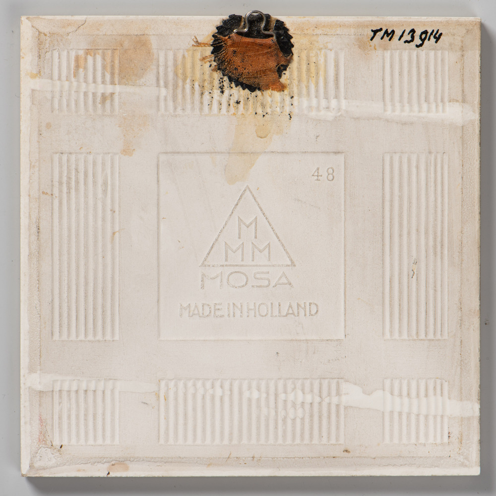Tegel van keramiek met tinglazuur, voorstellende: or...