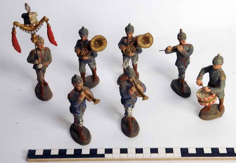 1 Vaandrig en 4 Duitse soldaten in blauw uniform