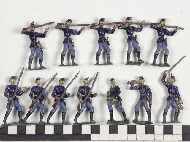 Eén Franse officier met twee soldaten, gemaakt van c...