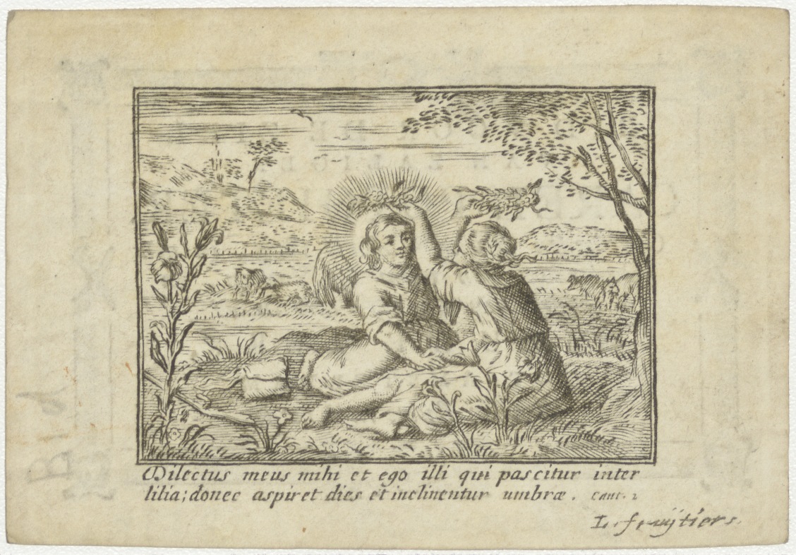 Amor divinus met lantaarn en Anima, met "Mijn siele ...