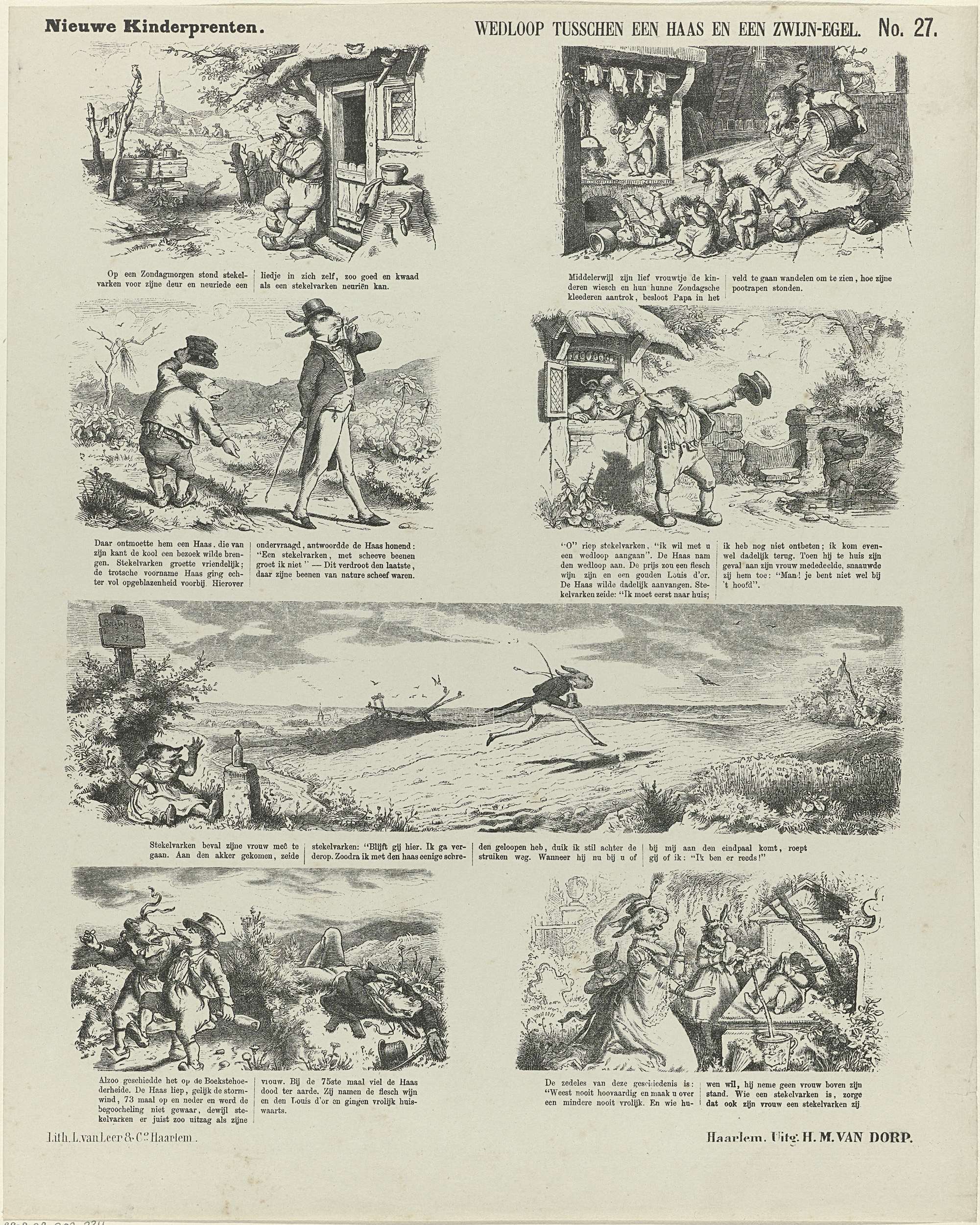 Wedloop tusschen een haas en een zwijn-egel