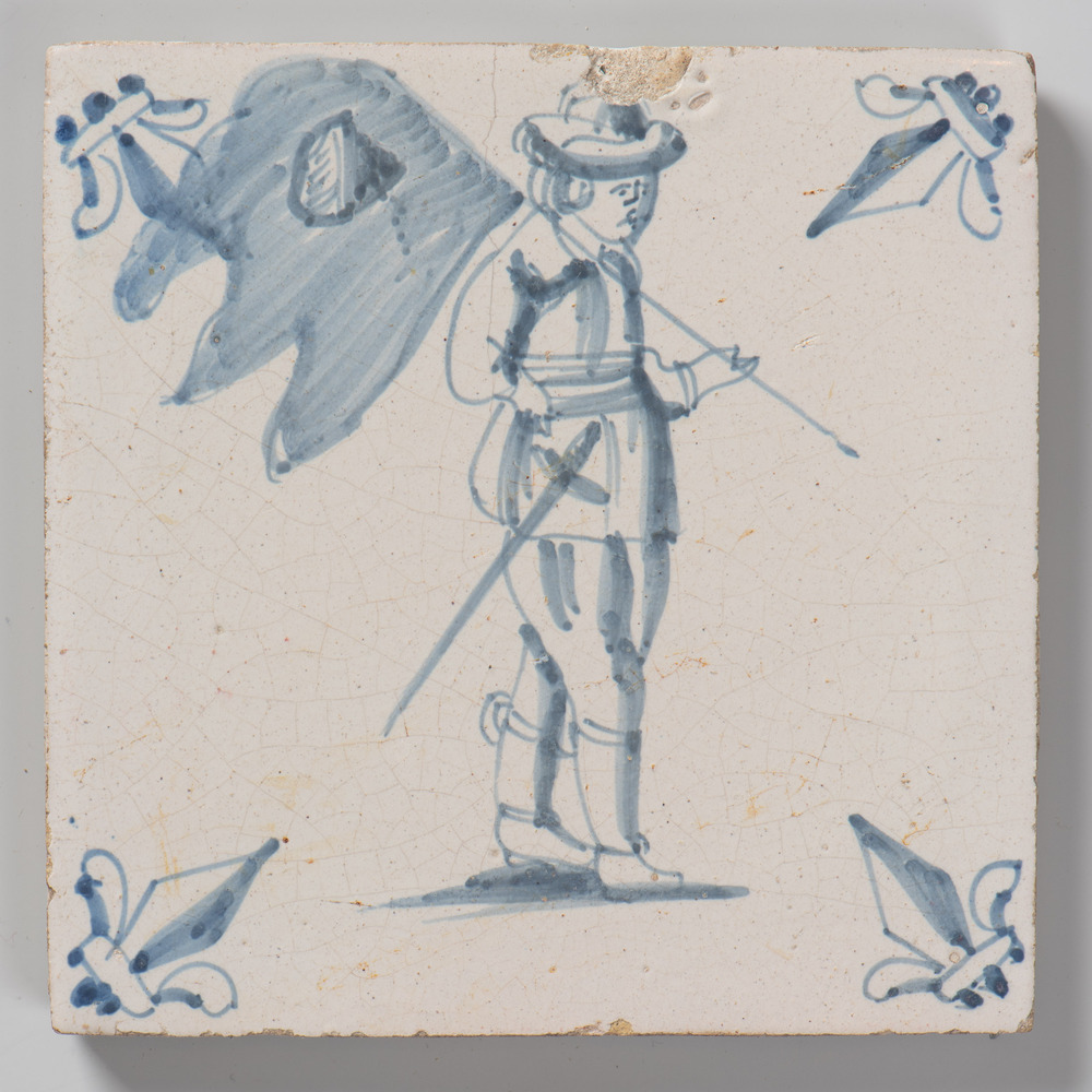 tegel van aardewerk met tinglazuur, voorstellende: v...