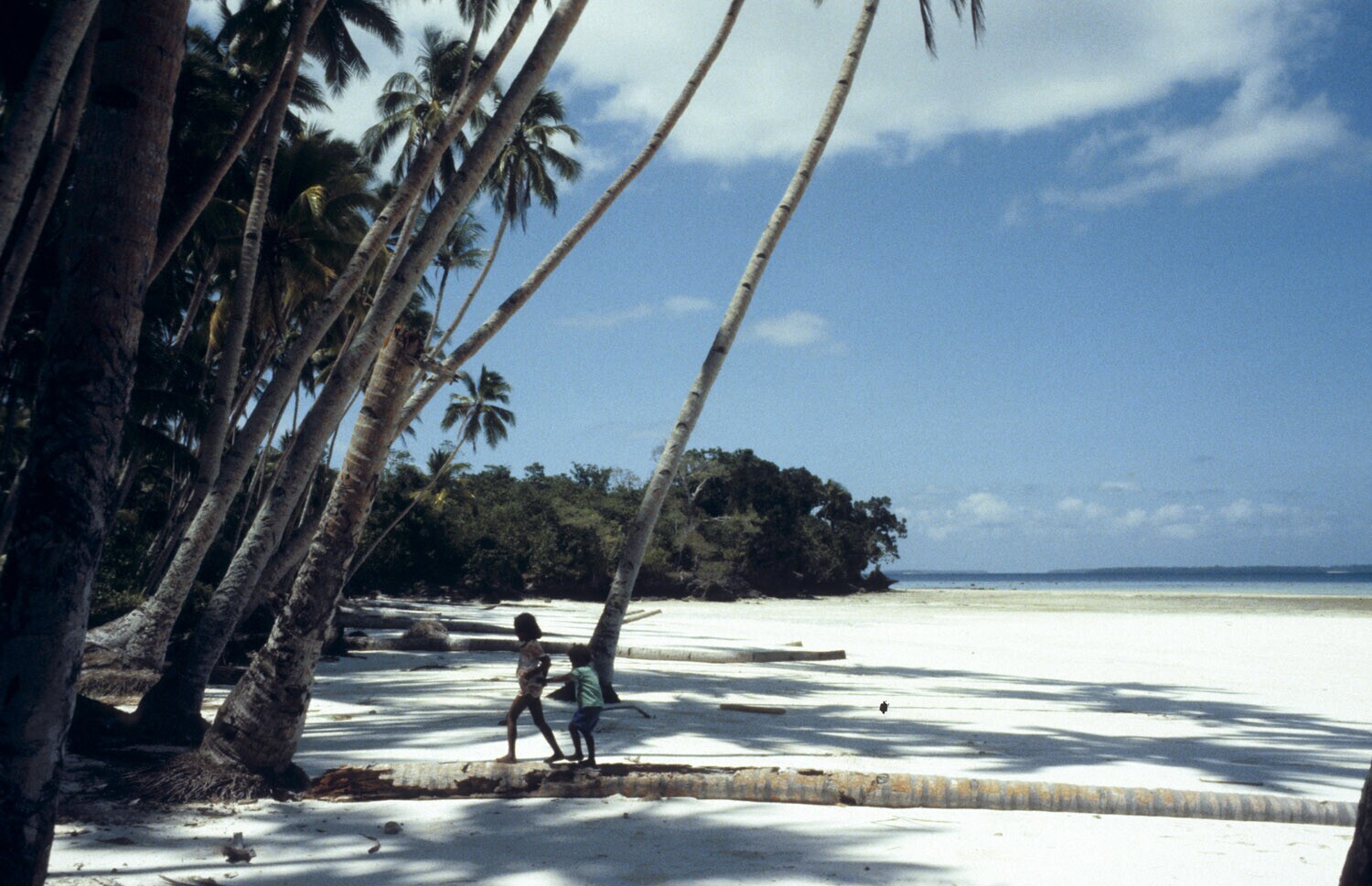 Jongetjes op een boomstam met de onmisbare parang in...