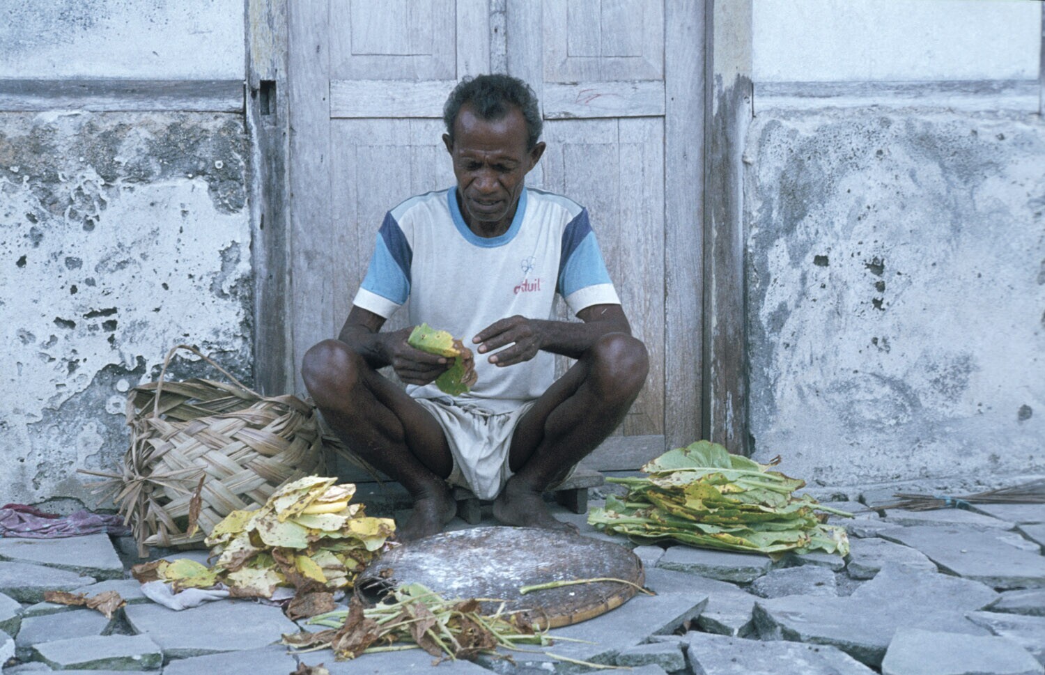 Een man sorteerd tabaksbladeren om te drogen, Ngilng...