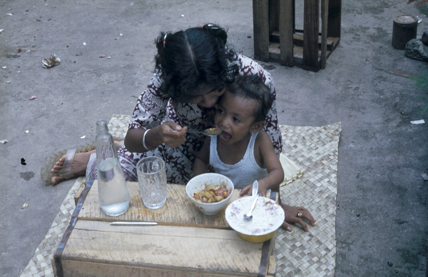 'Moeder voert een klein kind ''rujak'', Tual op Kei,...
