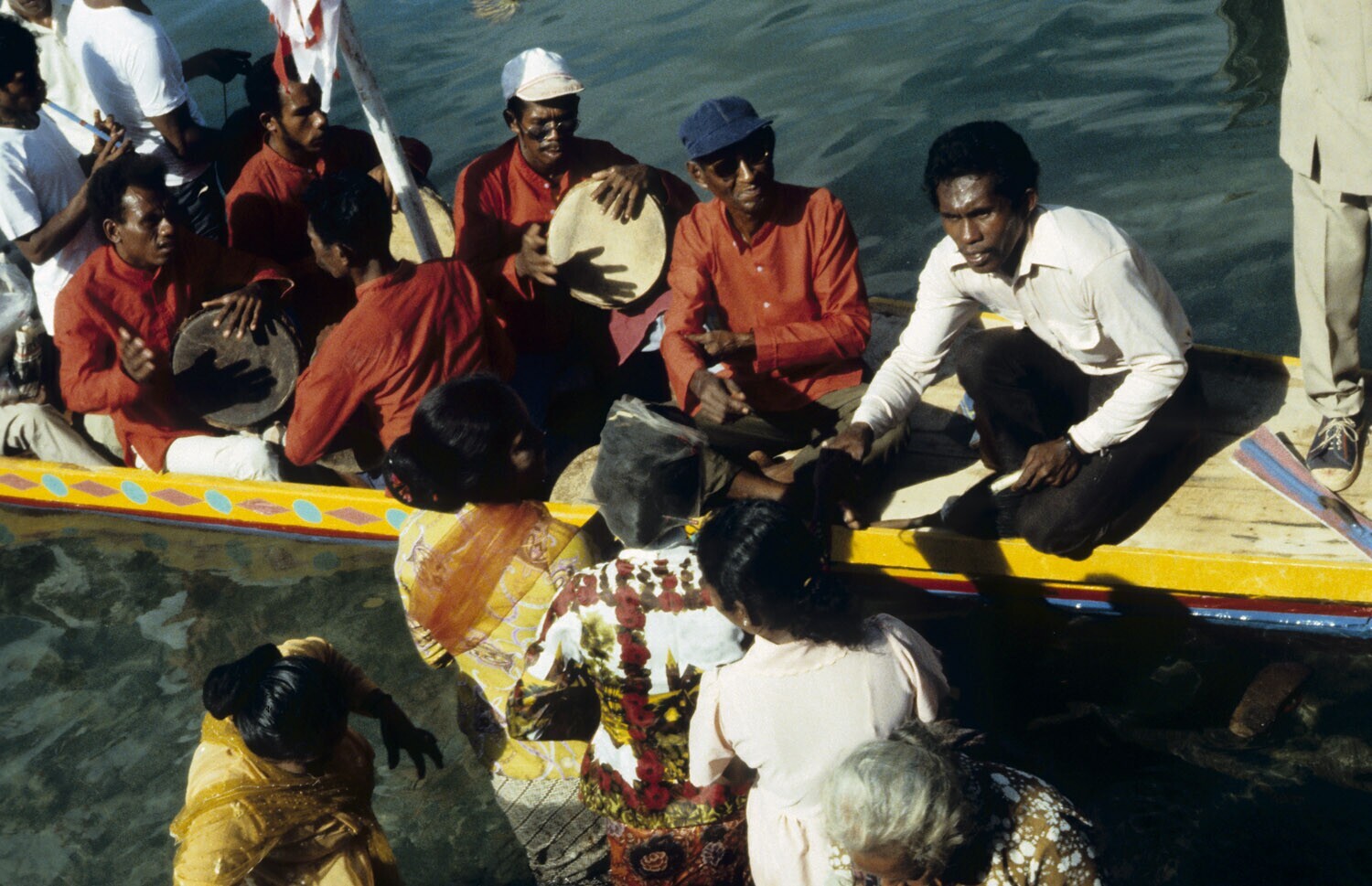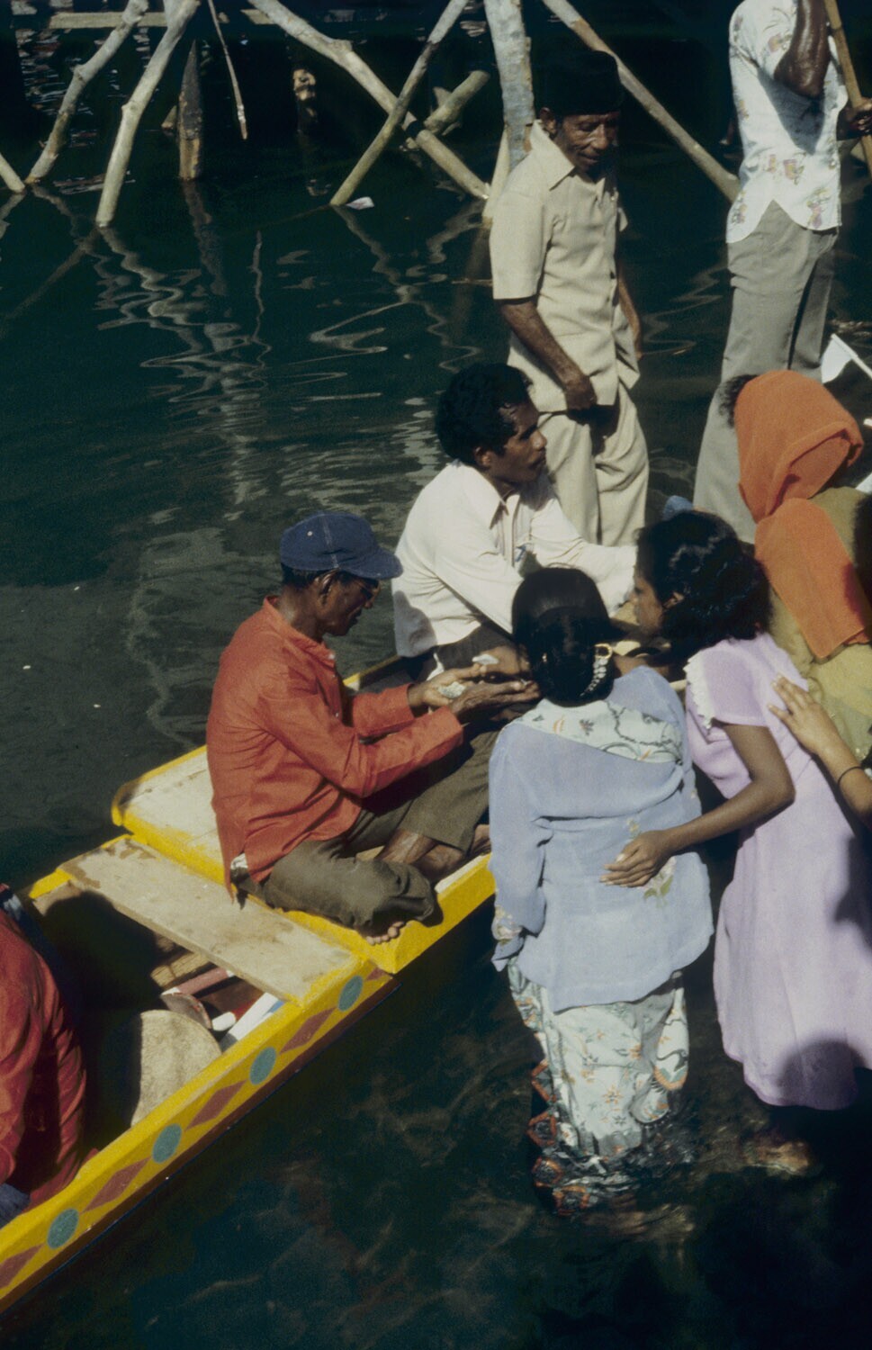 Kinderen spelen in een boot. Kandar op Selaru, Moluk...