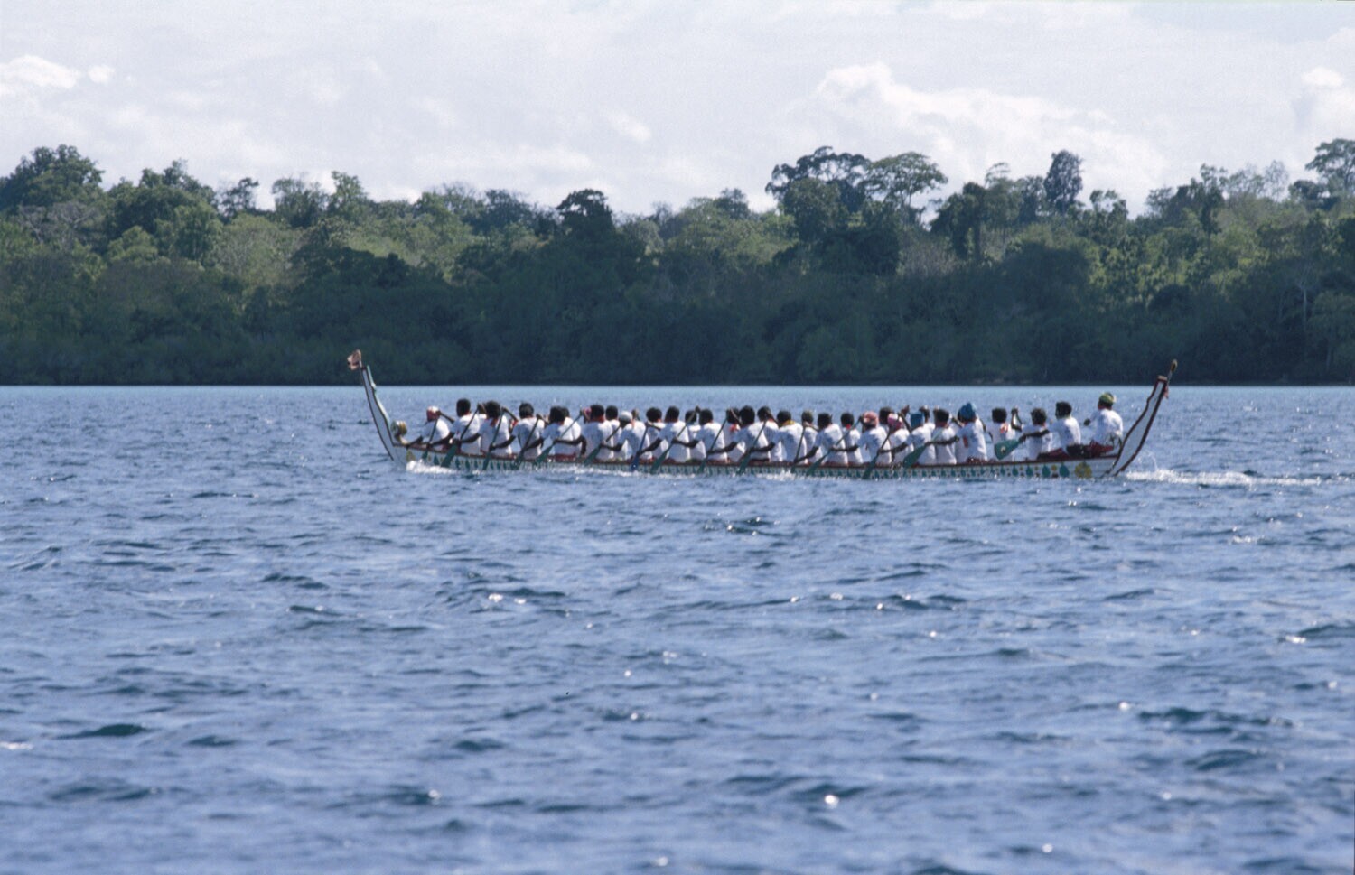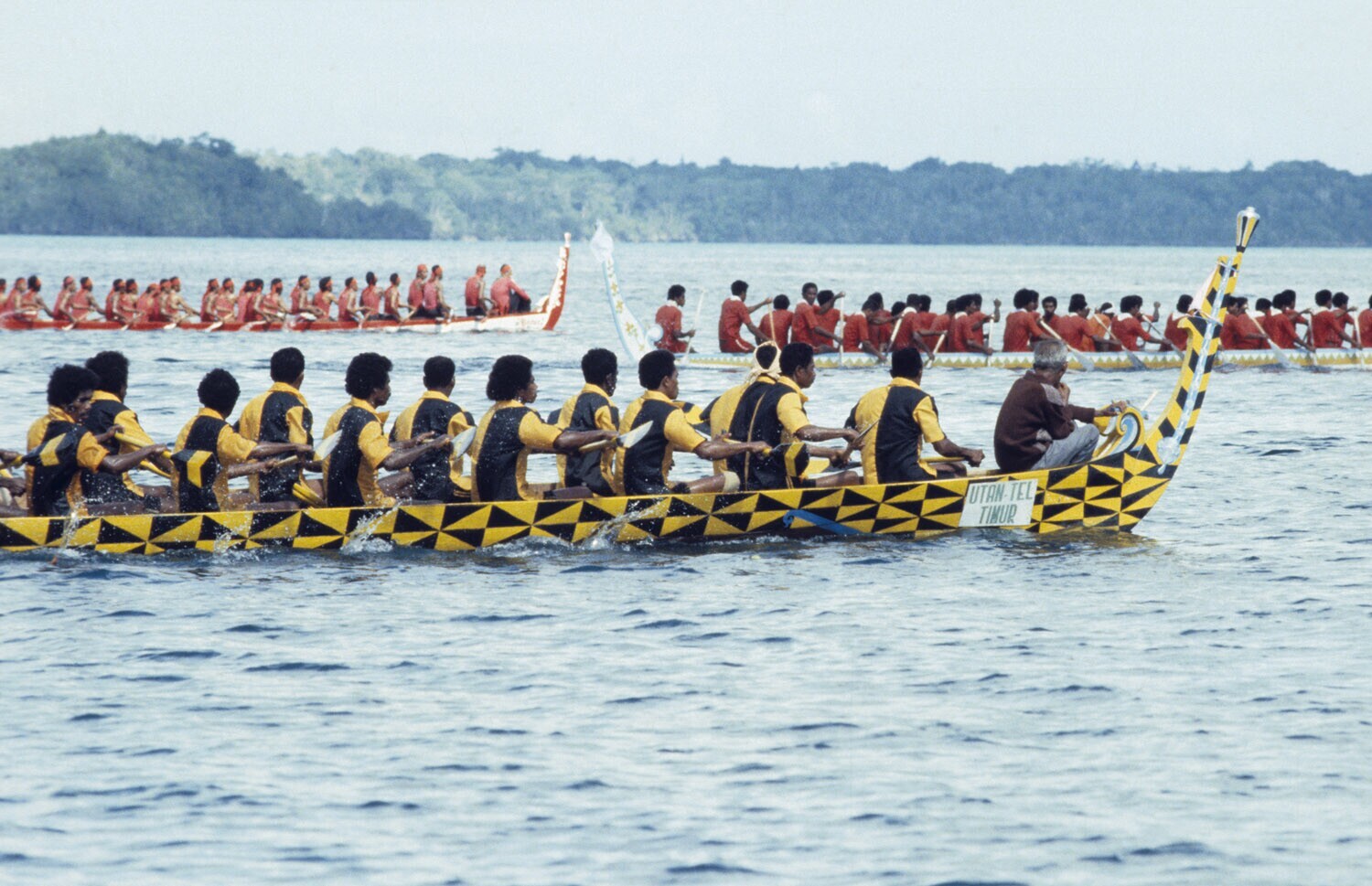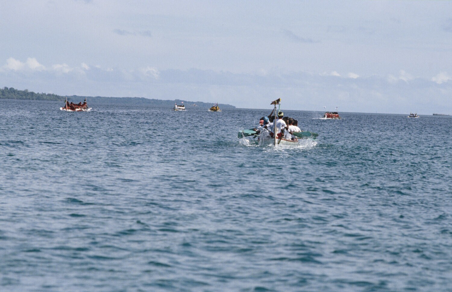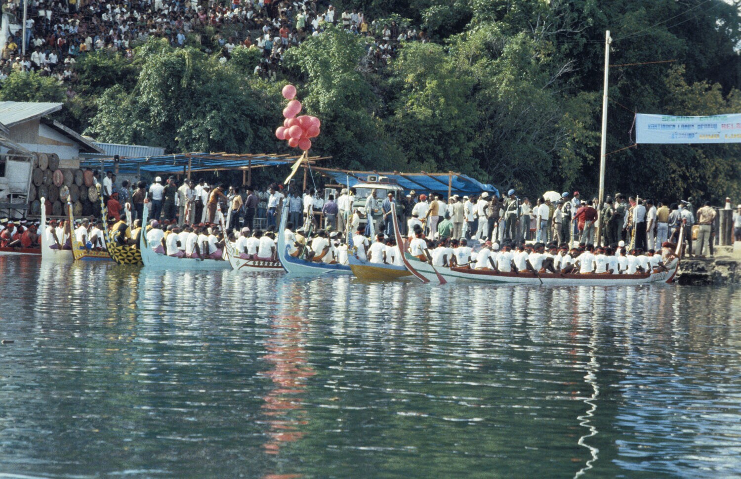 'De prauwen liggen voor de start te wachten bij de h...