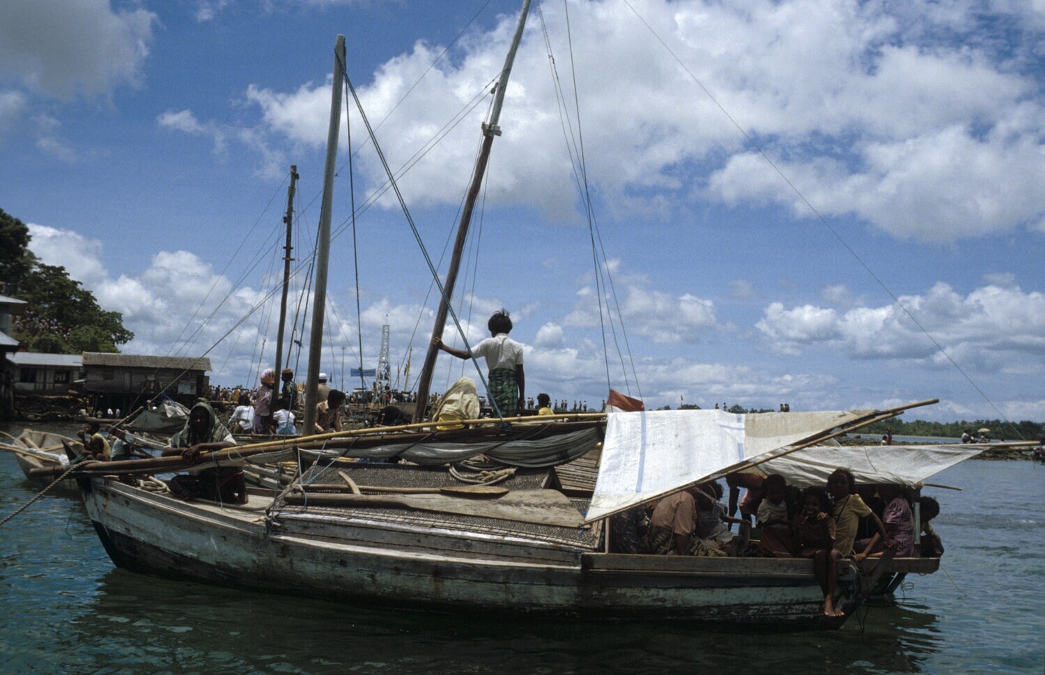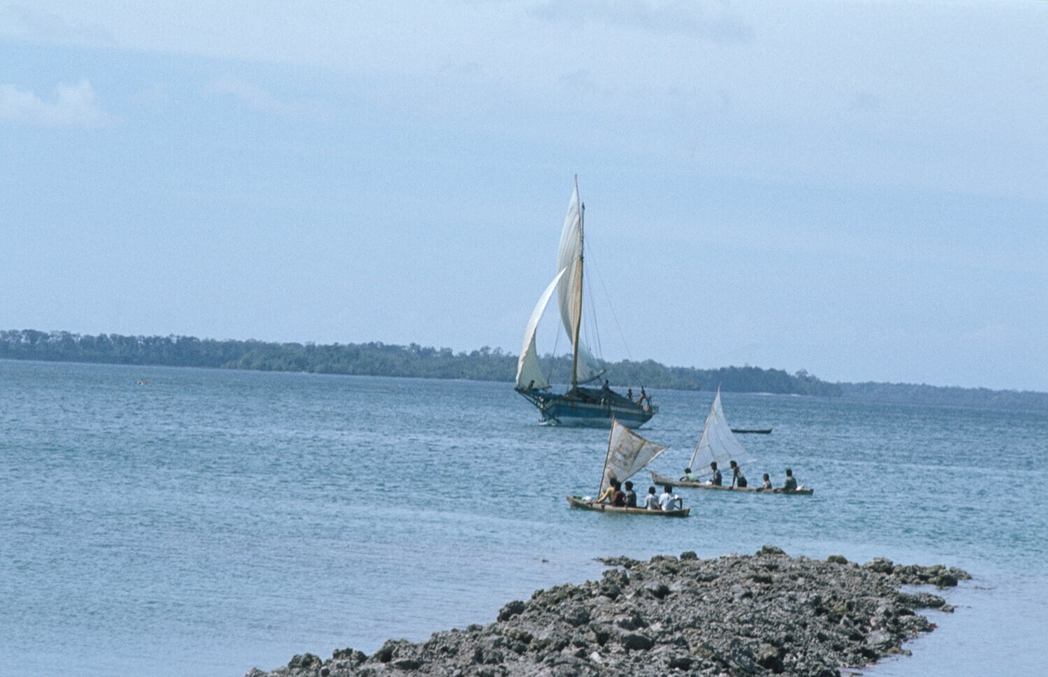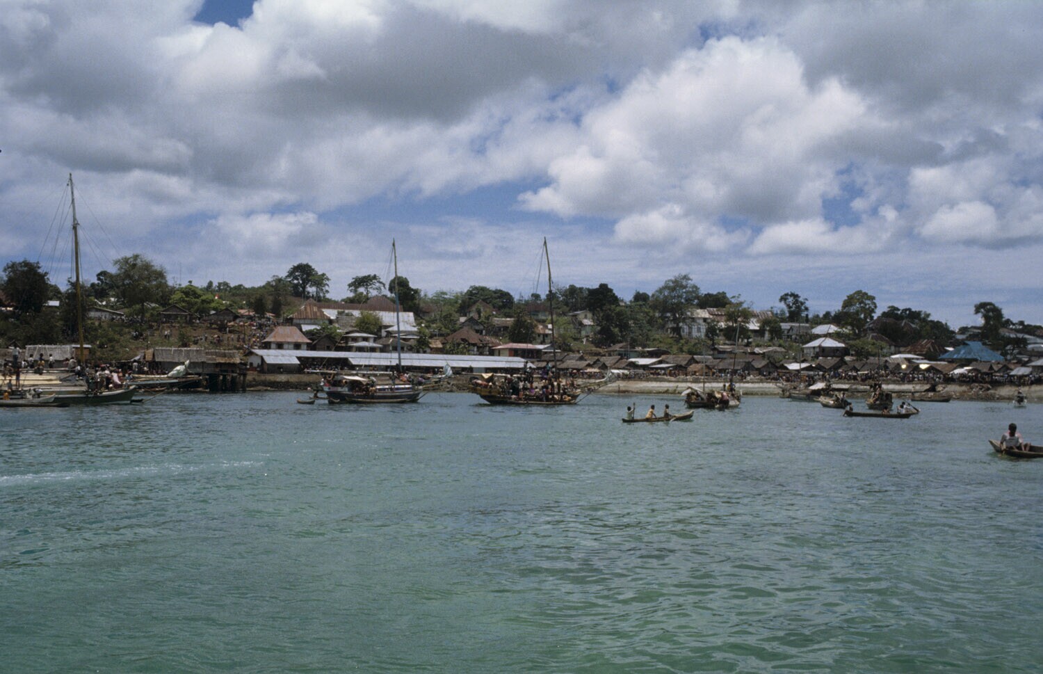 Zeilprauwen en prauwtjes in de haven van Tual op Kei...
