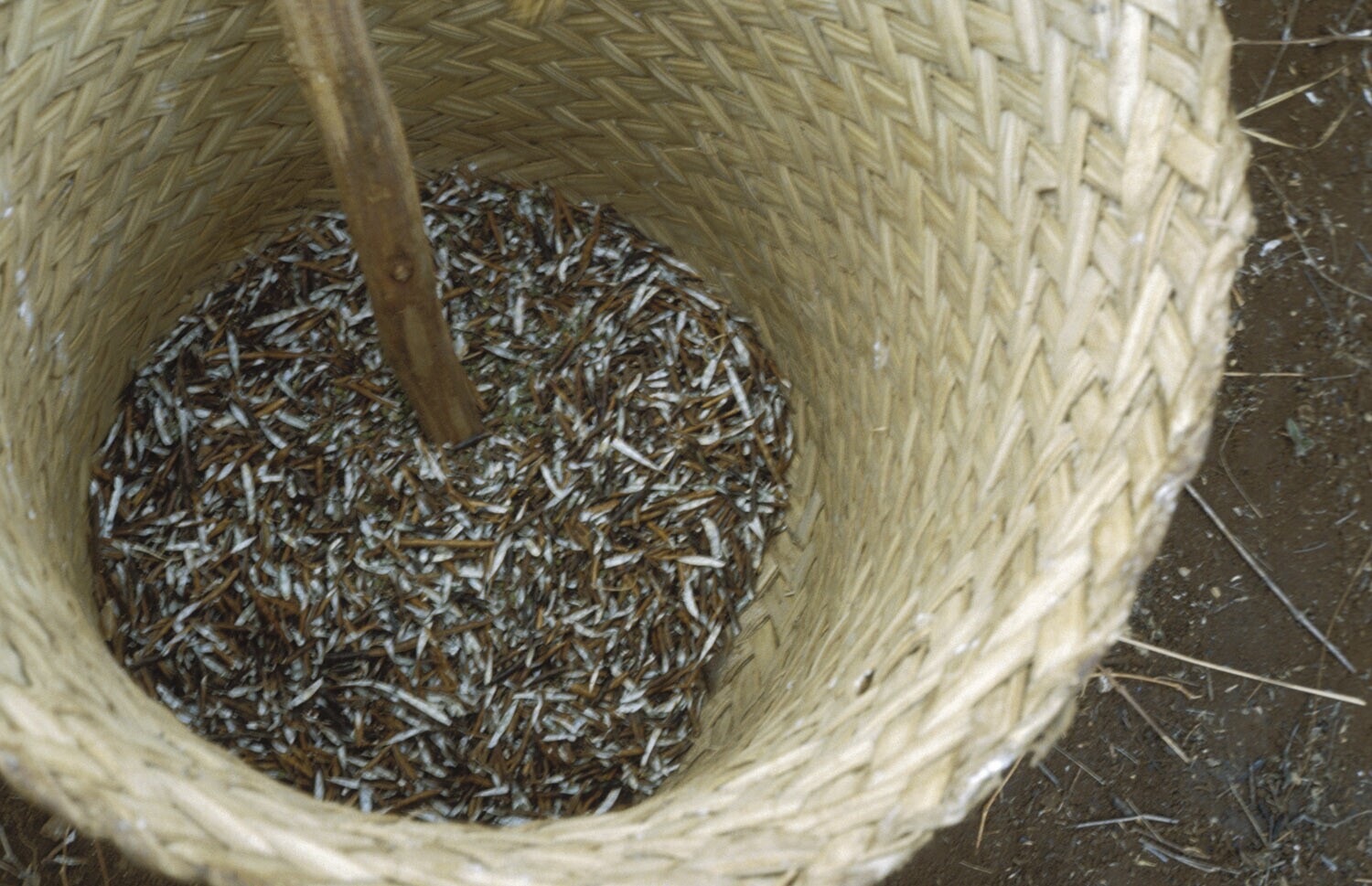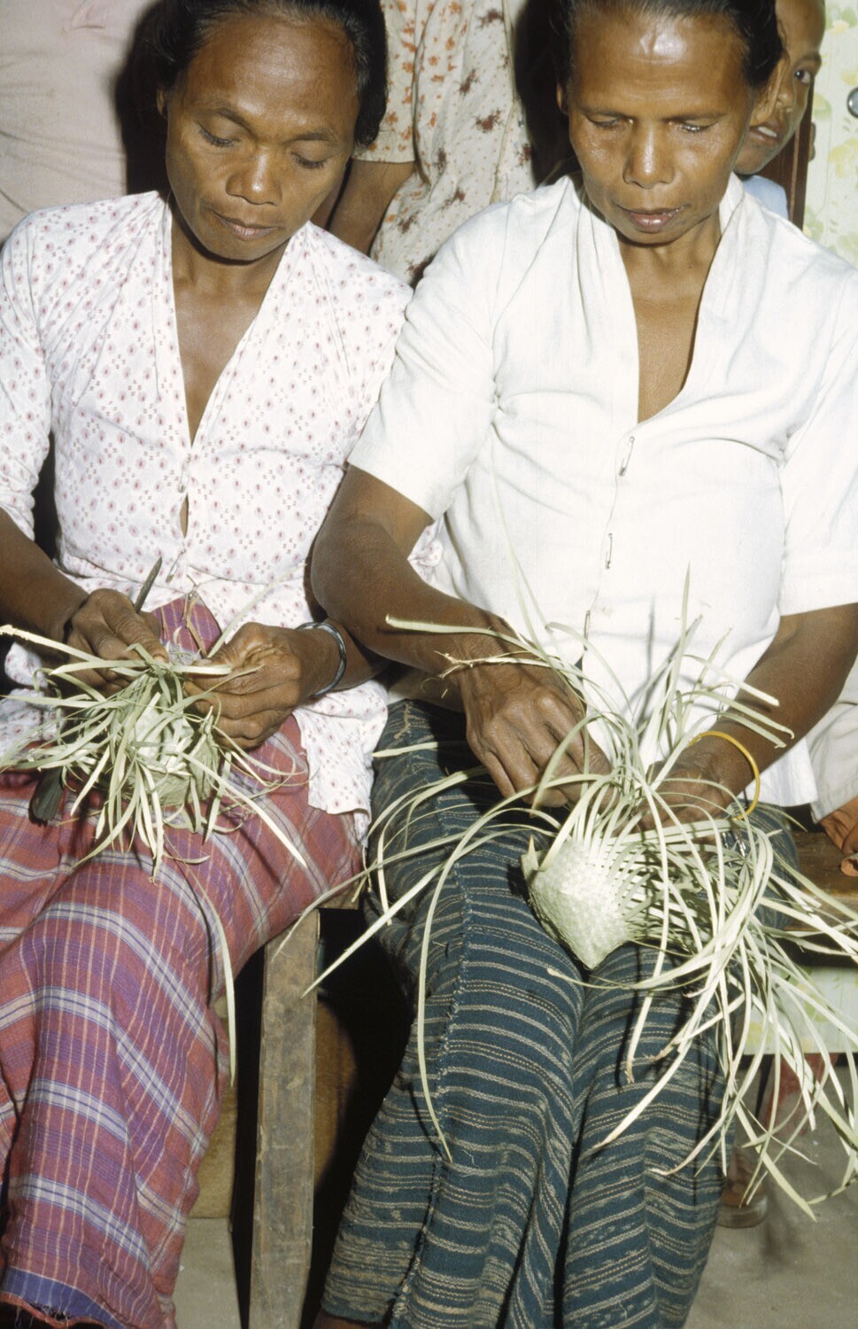 Het vlechten van kleine voorraadmandjes voor de kato...