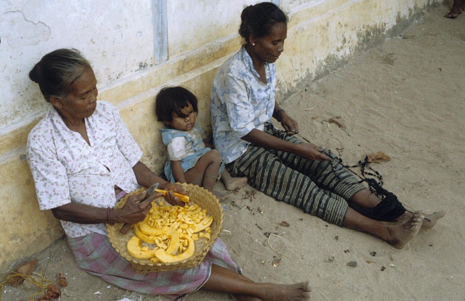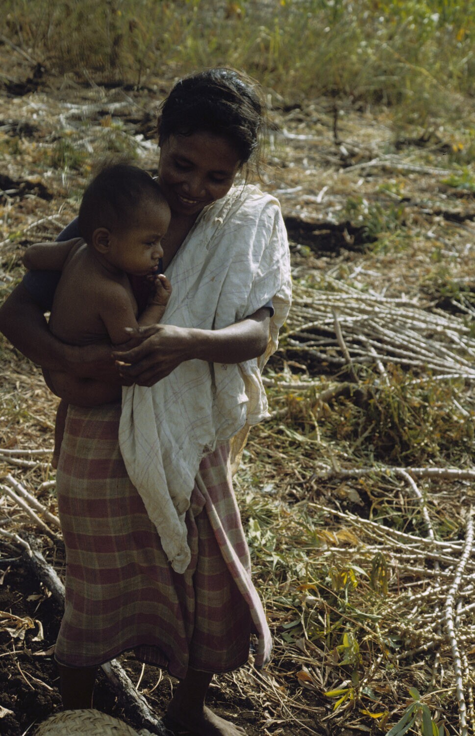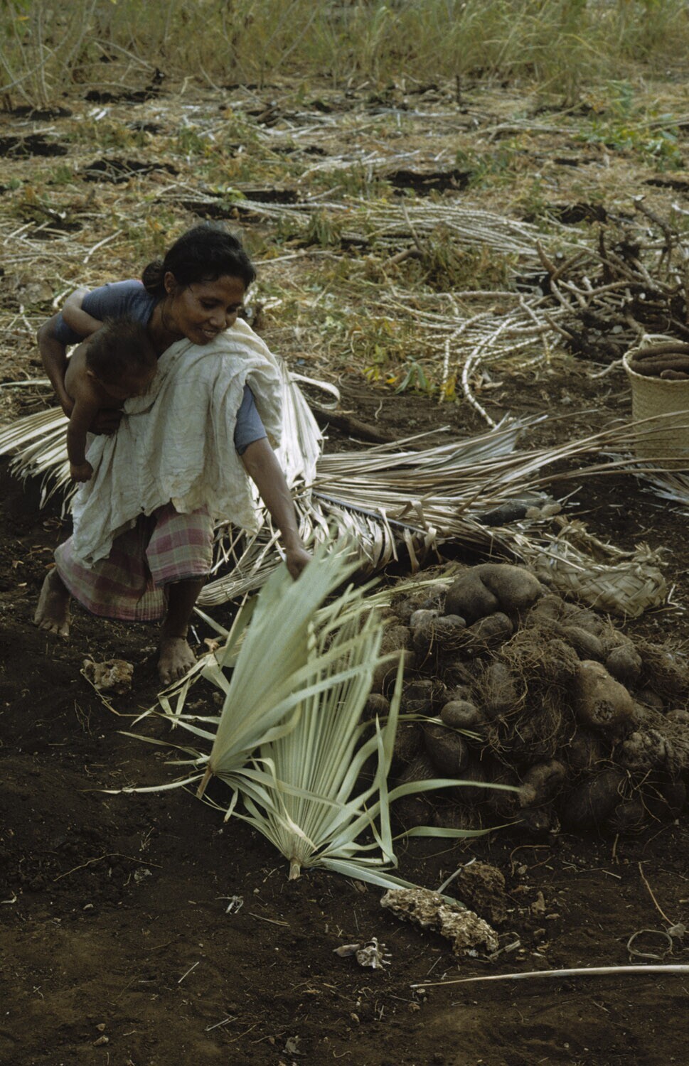 Vrouw met kind op het veld, Kandar op Selaru, Molukken.
