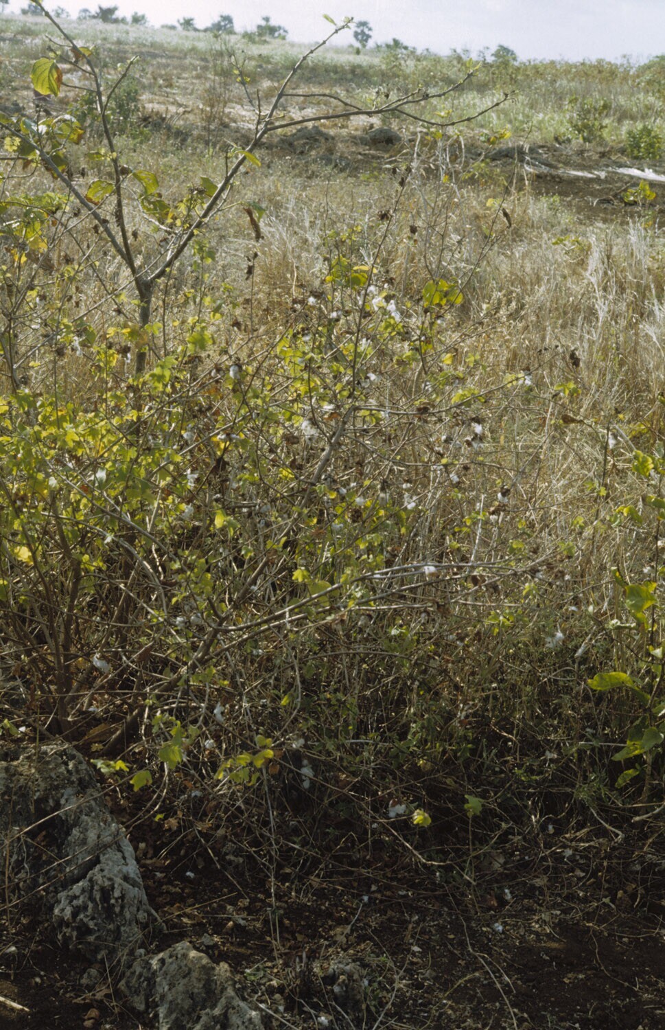 Een bloeiende katoenplant. Kandar op Selaru, Molukken.