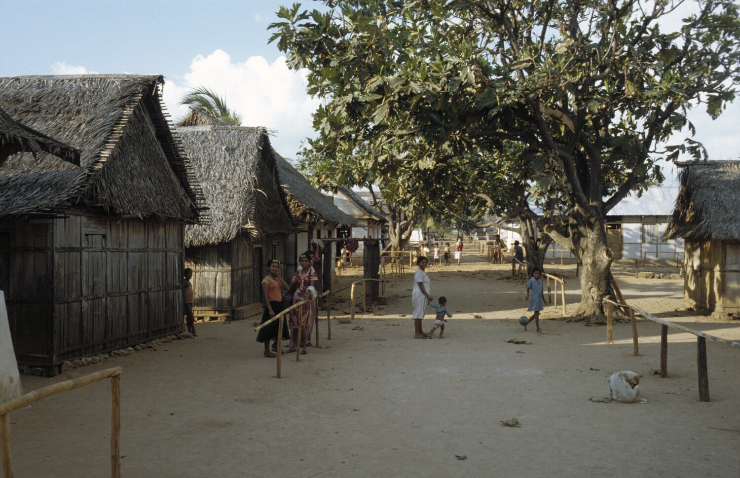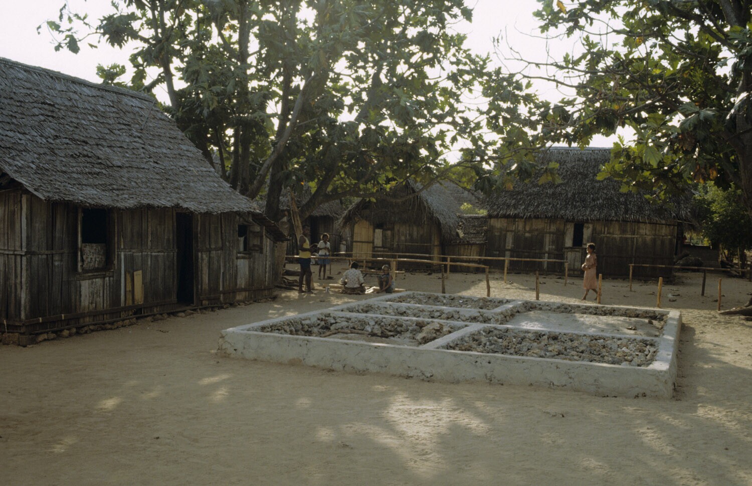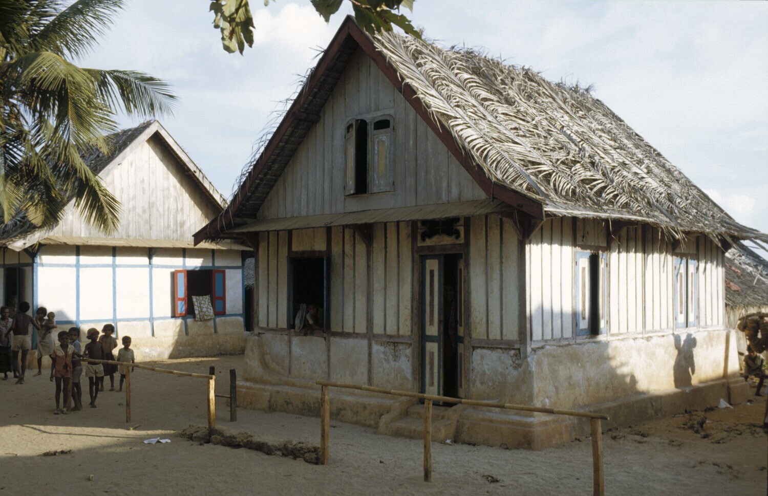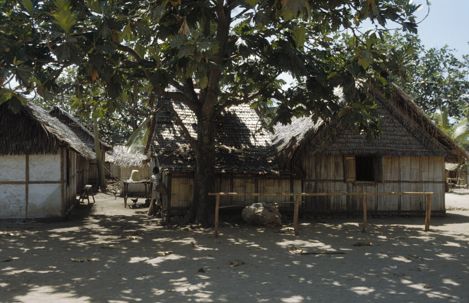 Woningen op Pasir pandjar op Kei, Molukken.