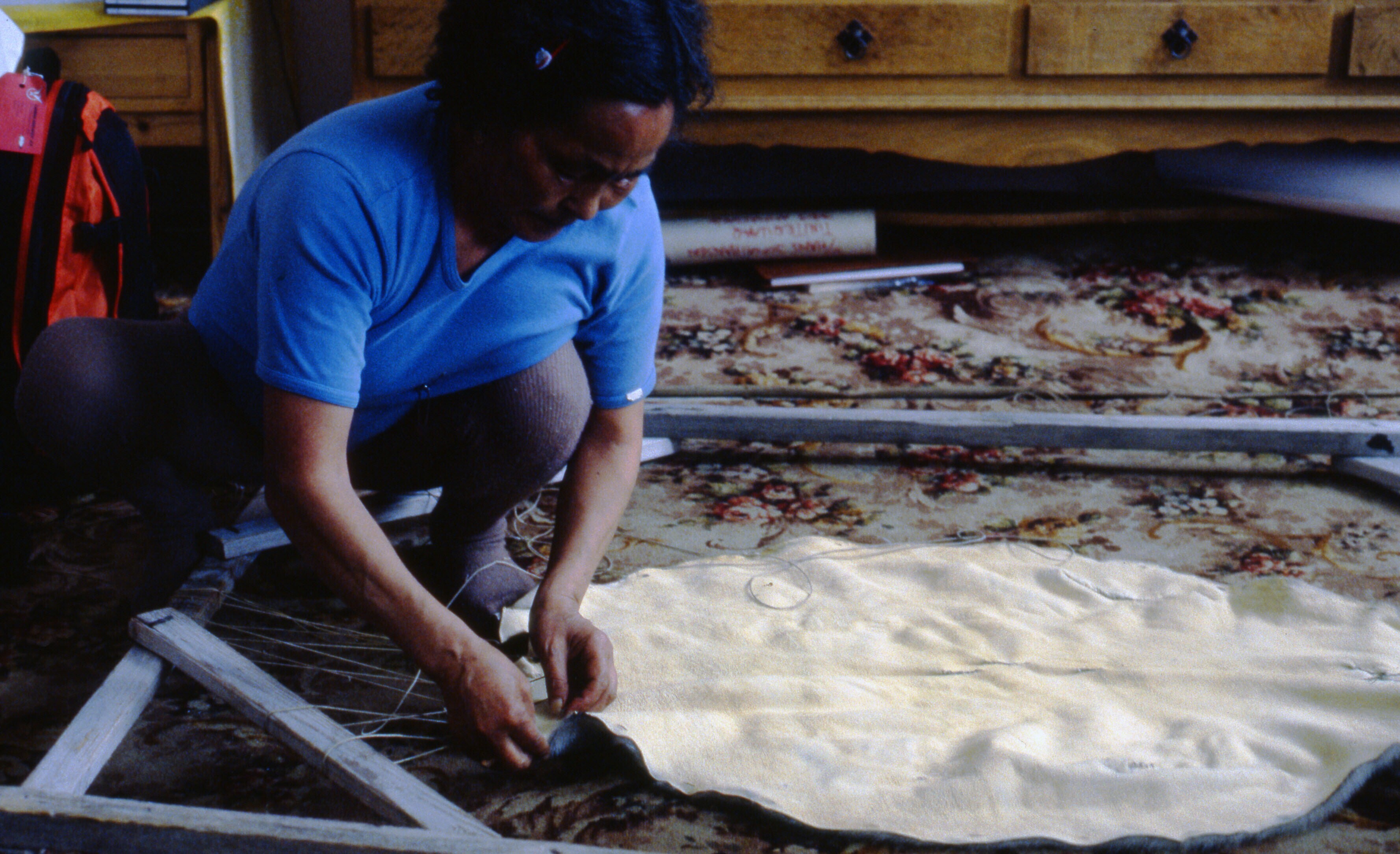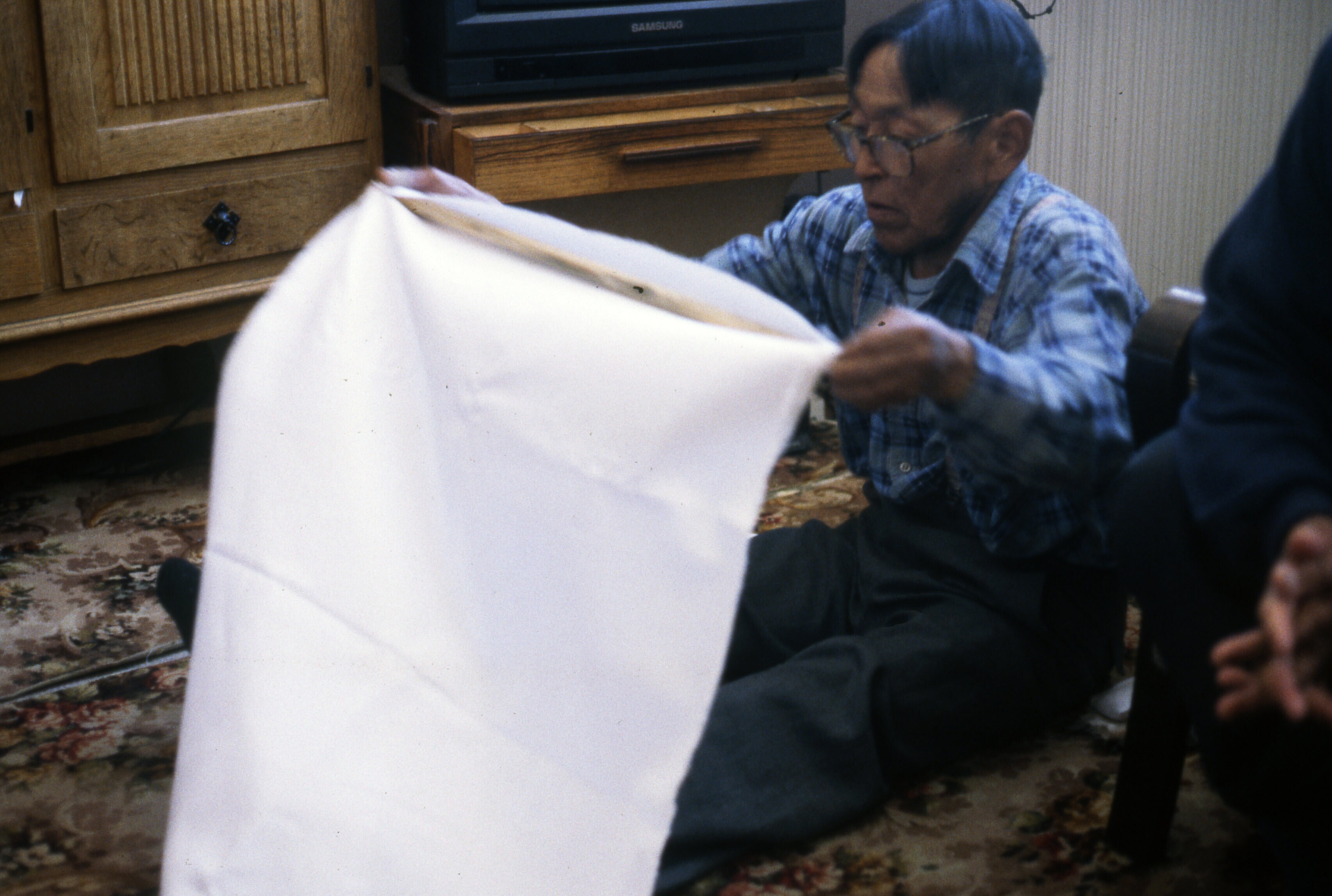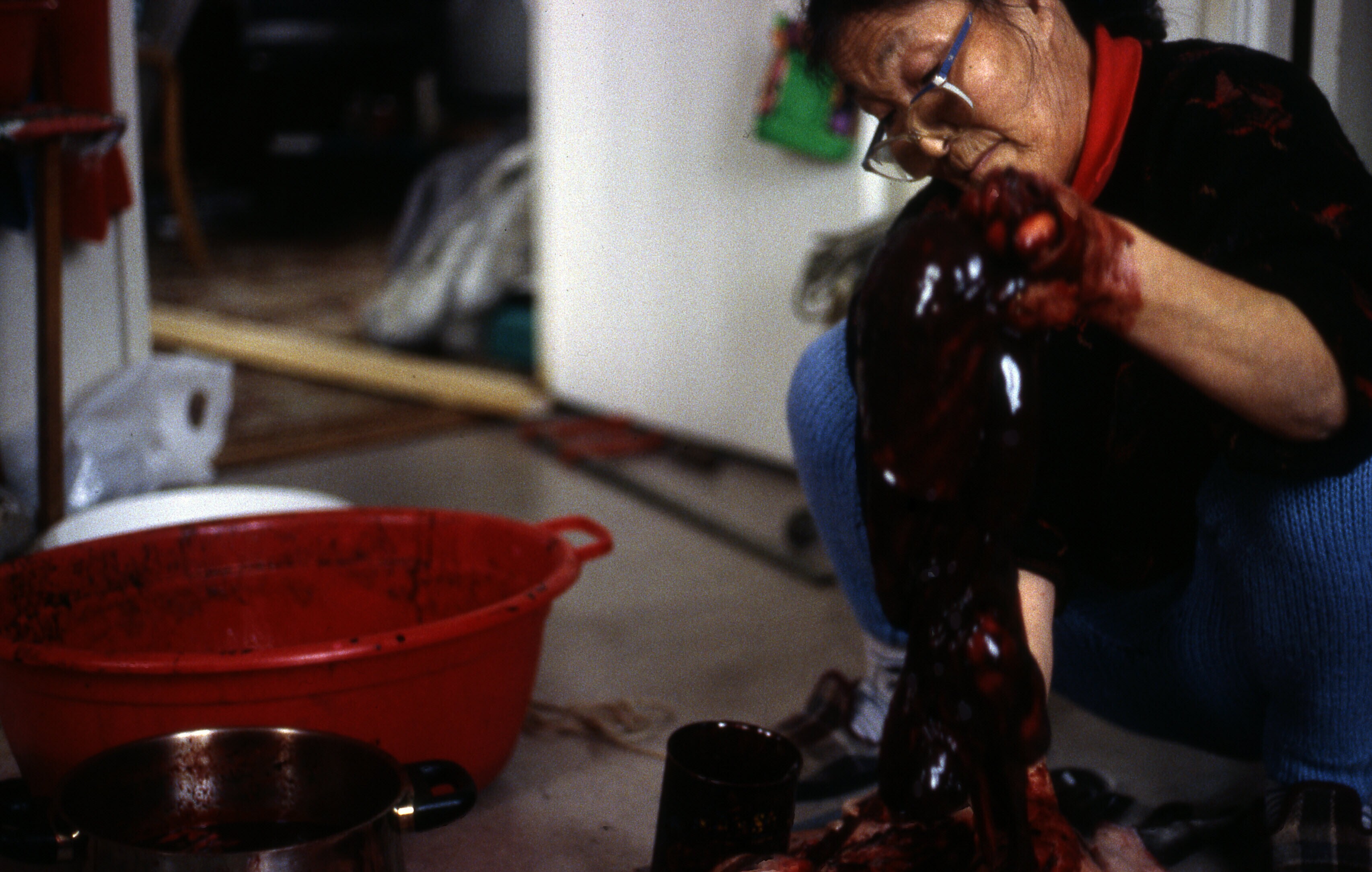 - Asta Jonathansen spant een zeehondenhuid op in een...