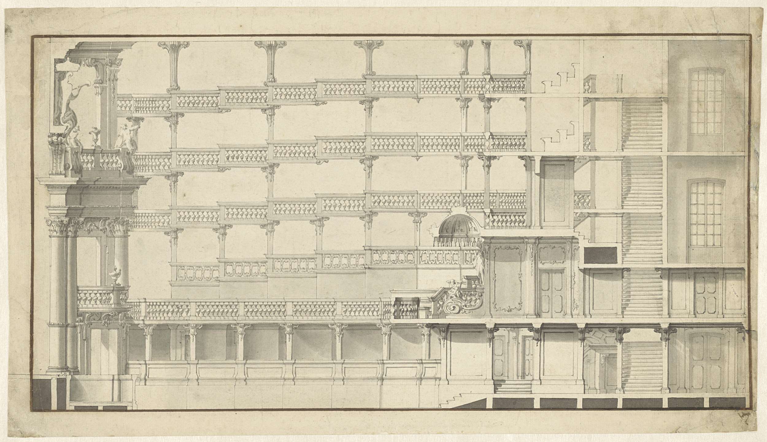 Ontwerp voor de zaal van de Hofoper, Mannheim, lengt...