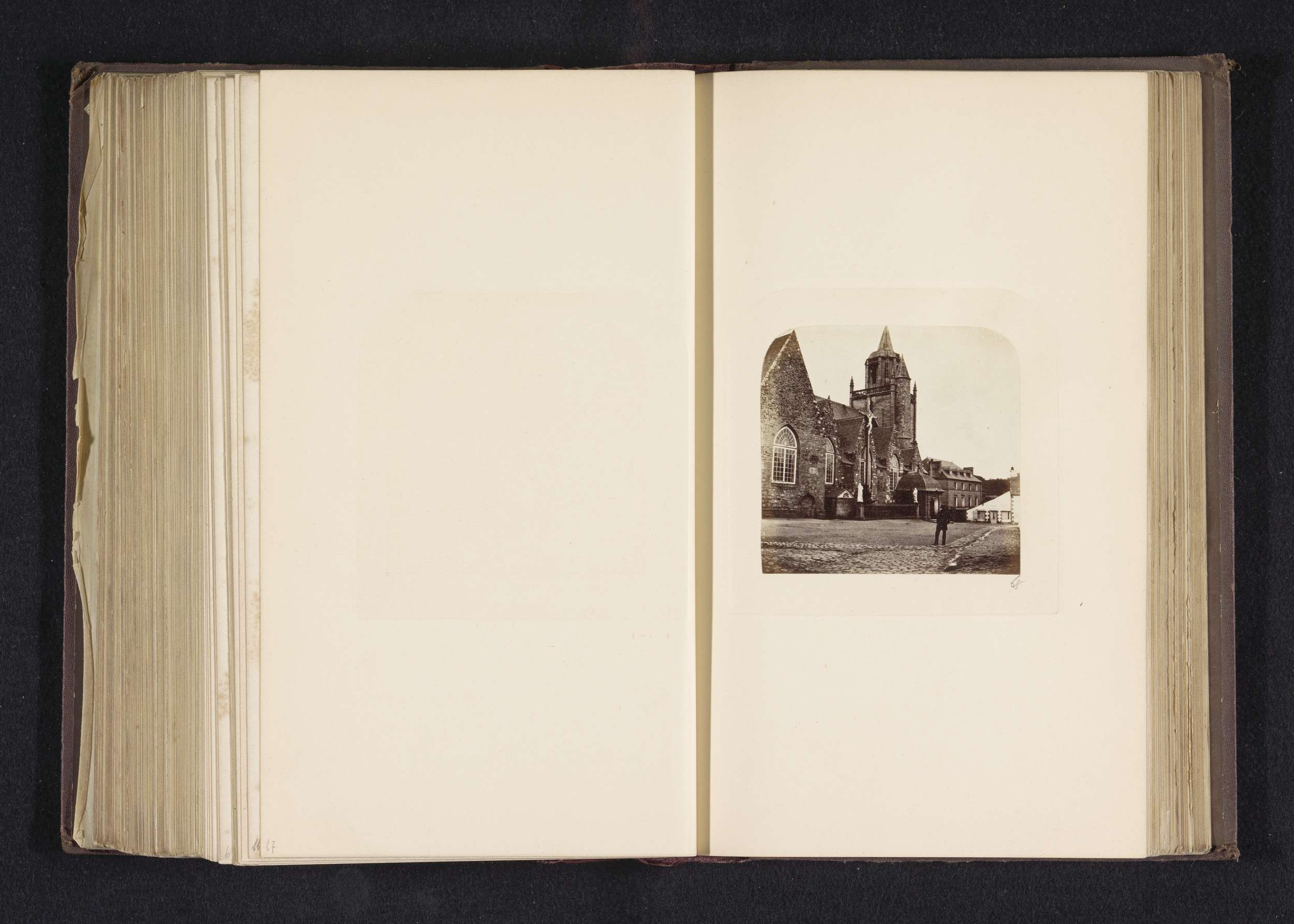 Gezicht op de noordzijde van de kerk en een crucifix...