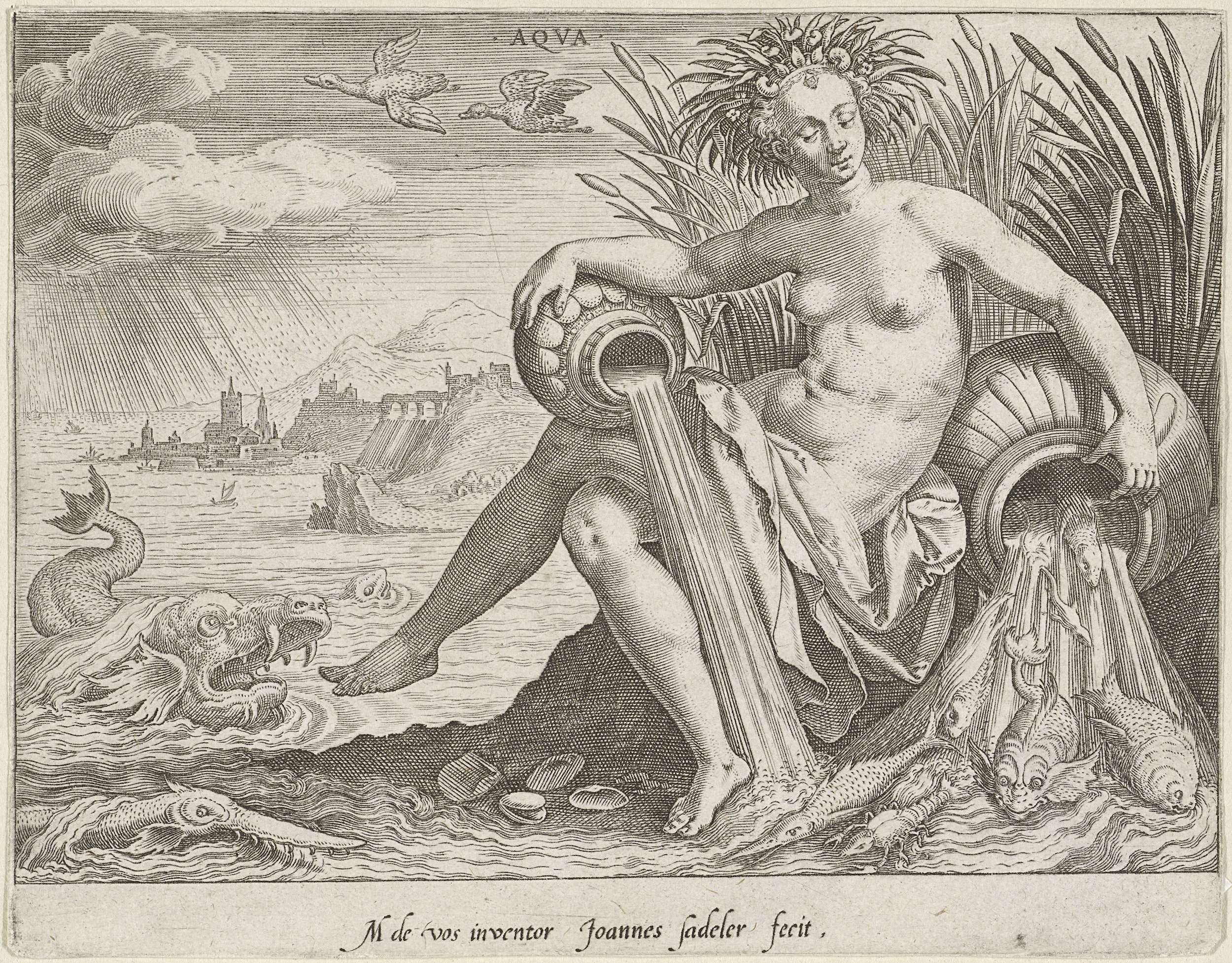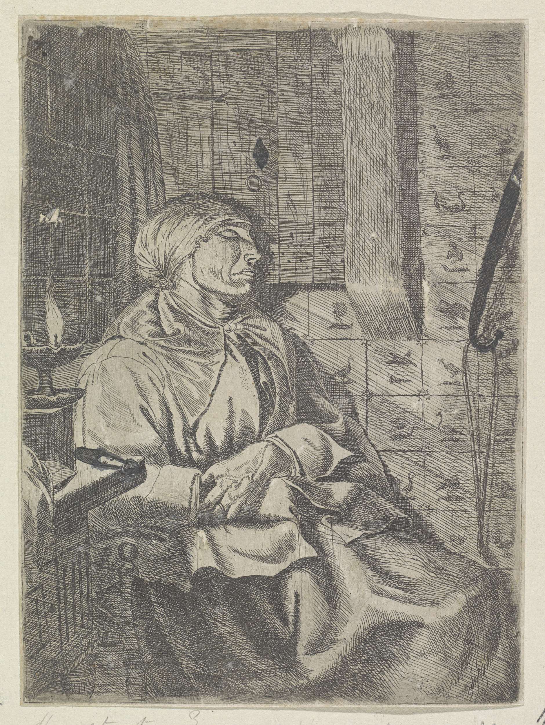 Vrouw, vermoedelijk Maria Magdalena, staande in land...