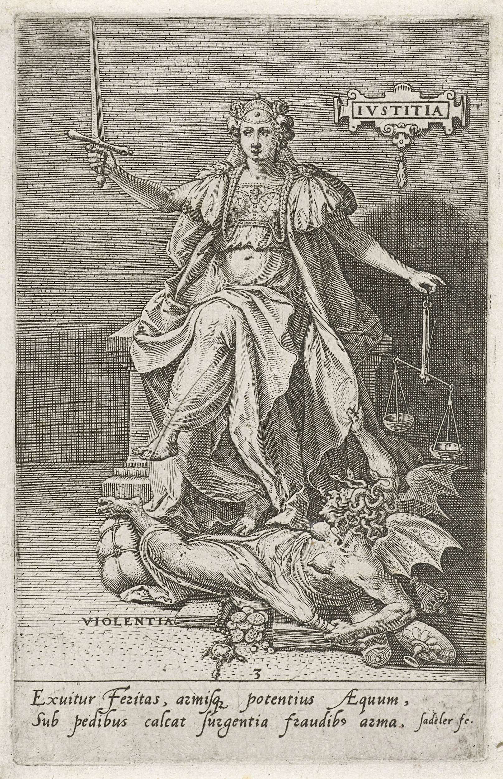 Gerechtigheid (Justitia ) overwint Geweld (Violentia)