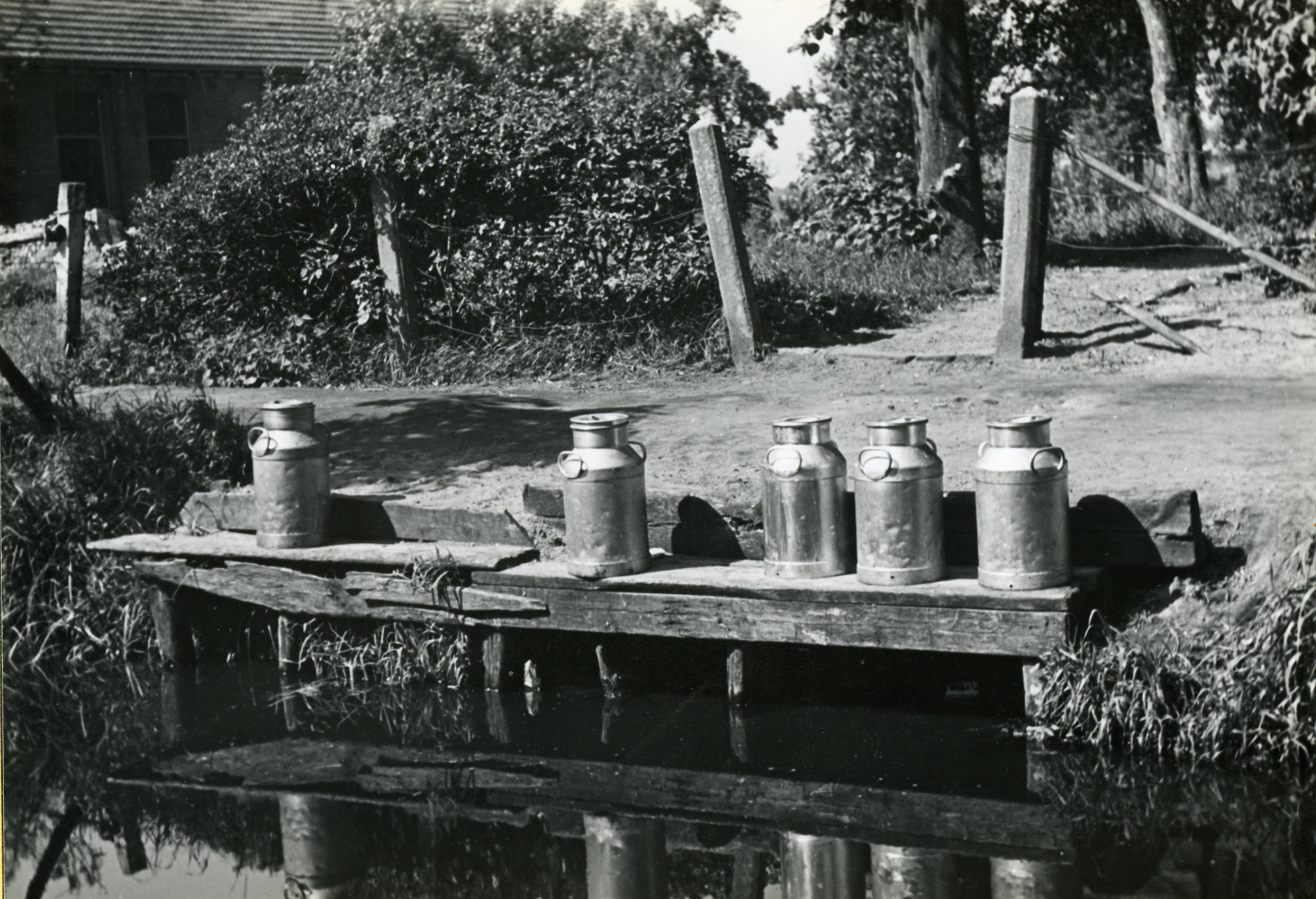 Steiger met melkbussen, Giethoorn, 1947 (zwart-wit f...