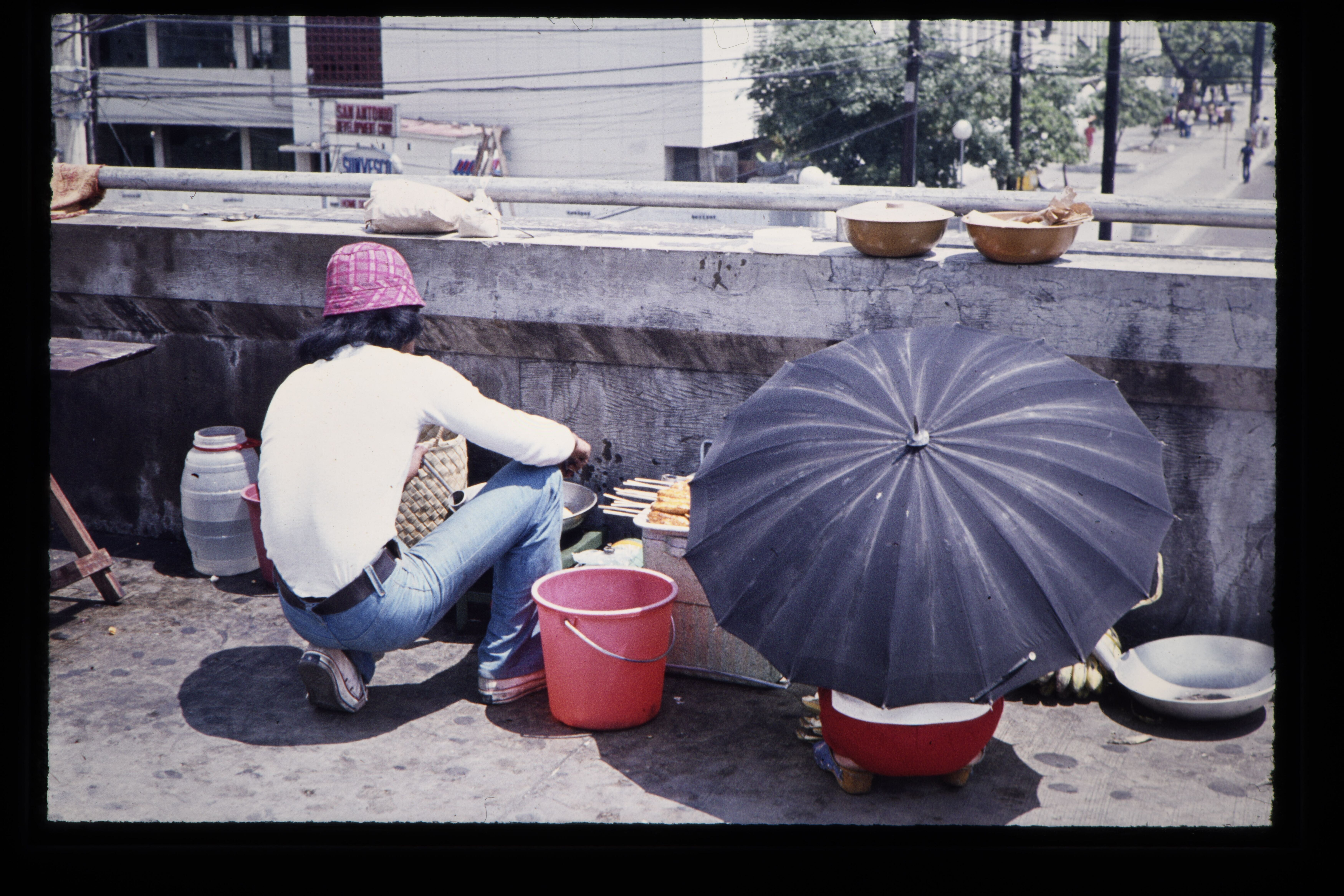 'Voetgangersbrug over de Taft Avenue Sigaretten en s...