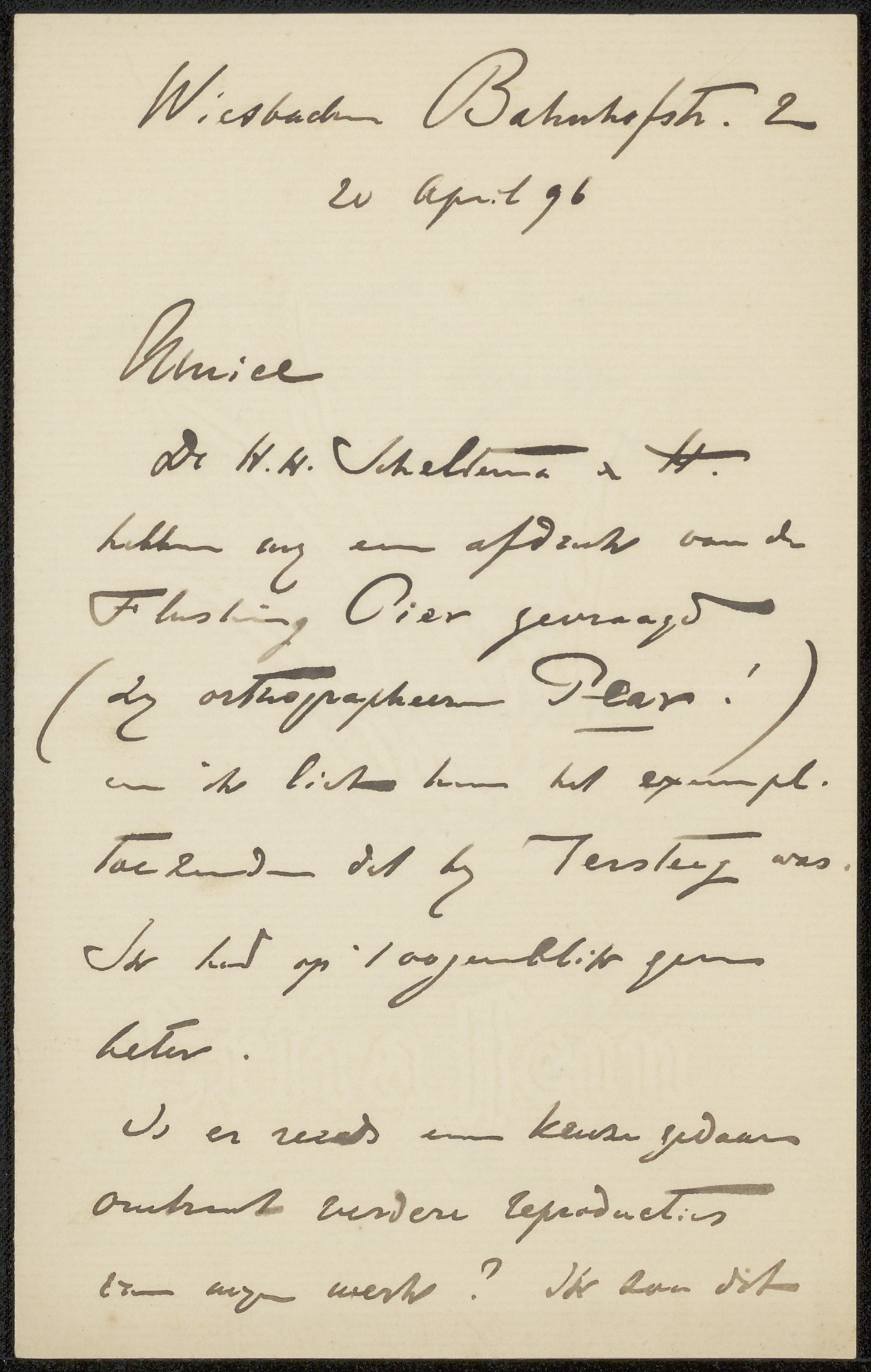 Brief aan Philip Zilcken en Henriette Wilhelmina van...