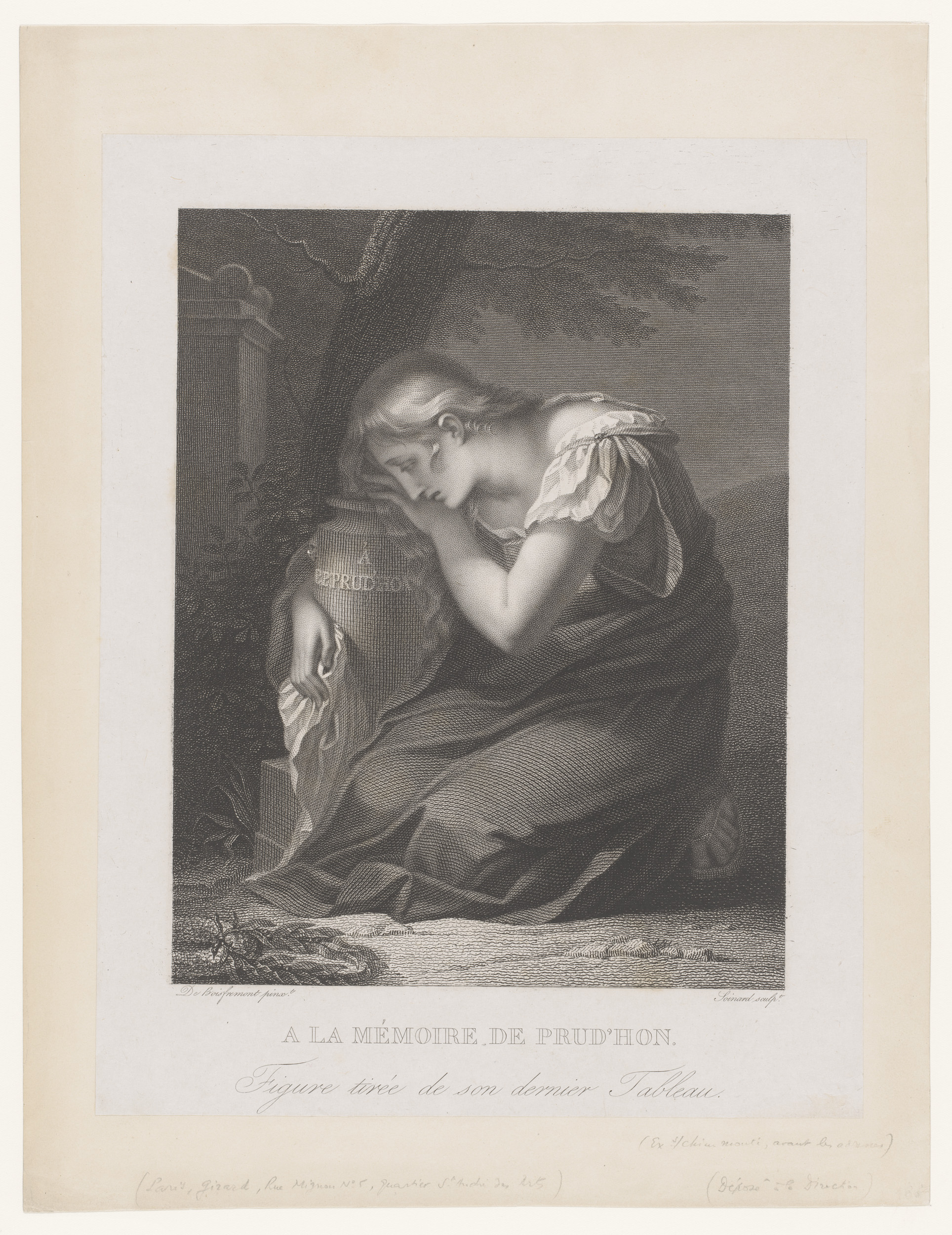 Vrouw rouwend bij urn van Pierre Prud'hon